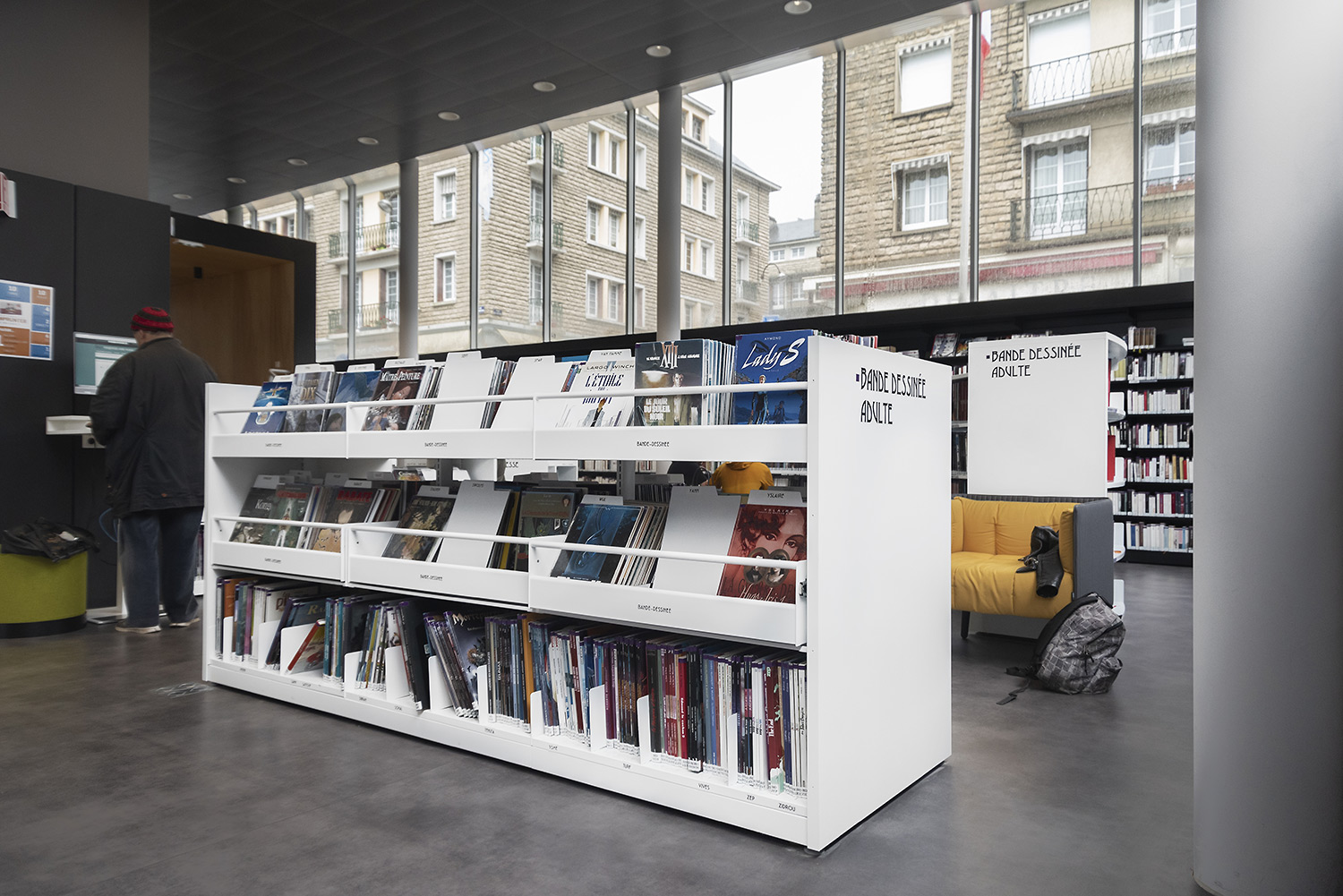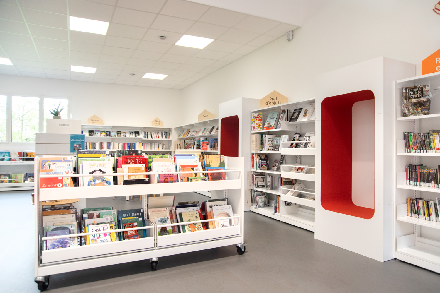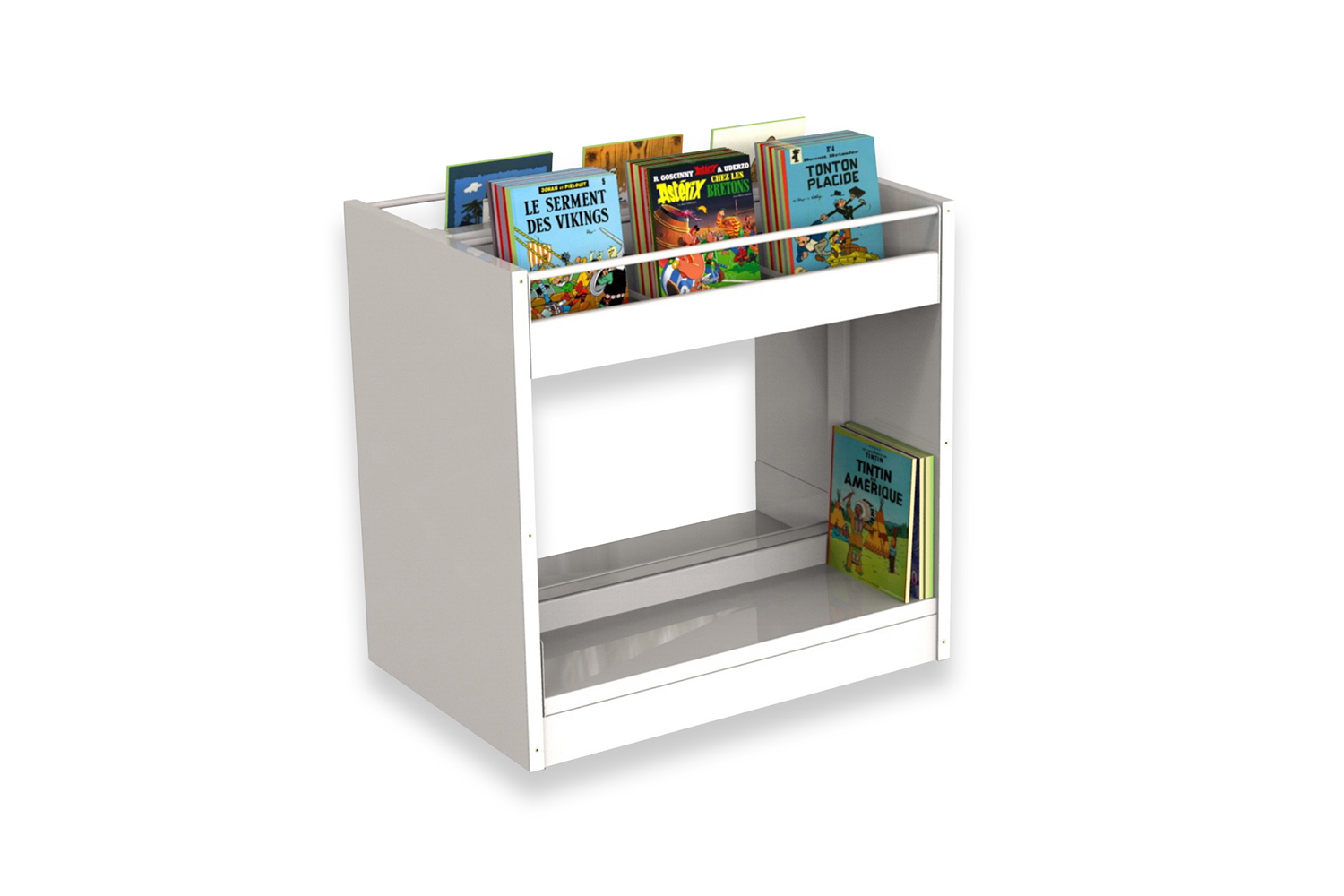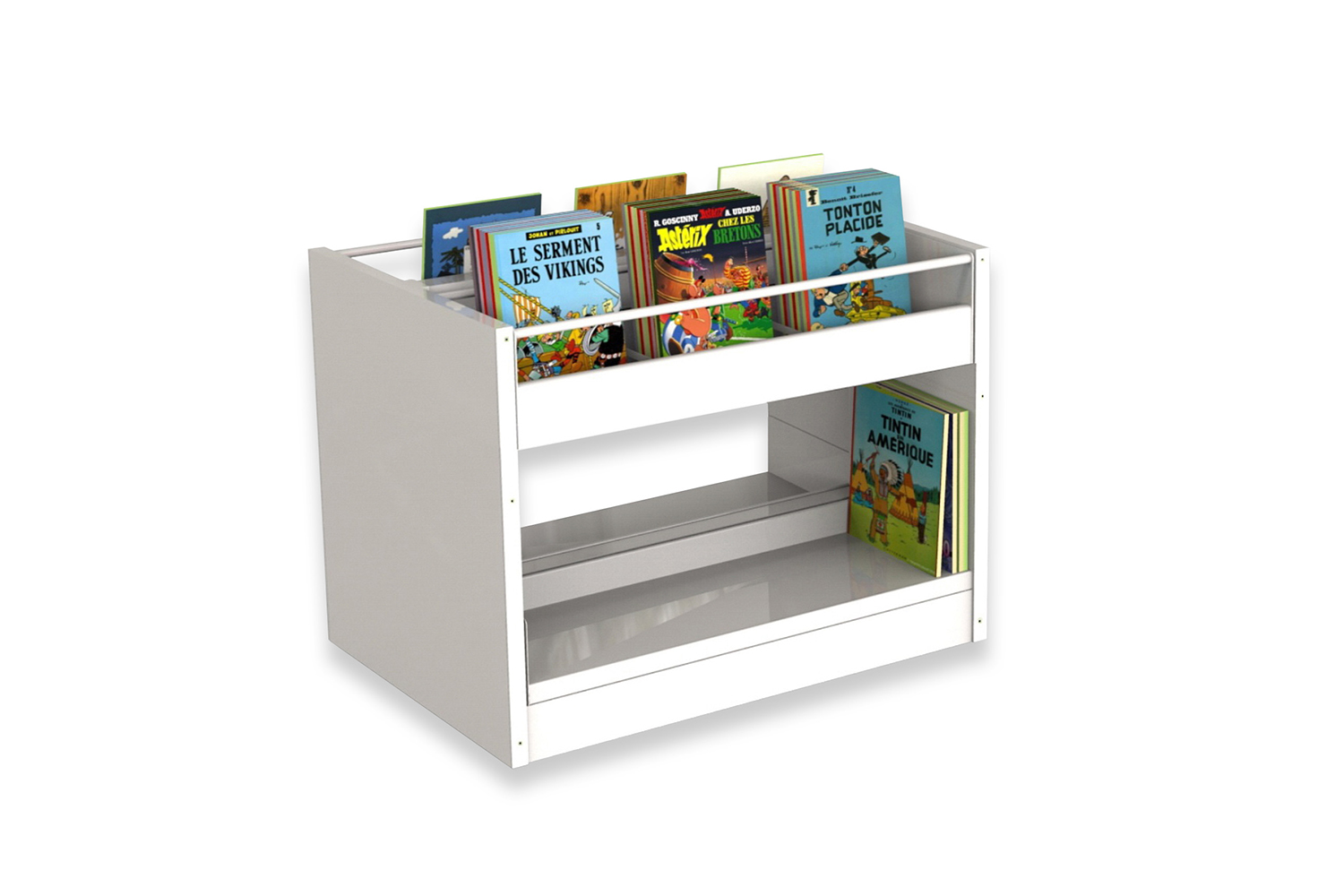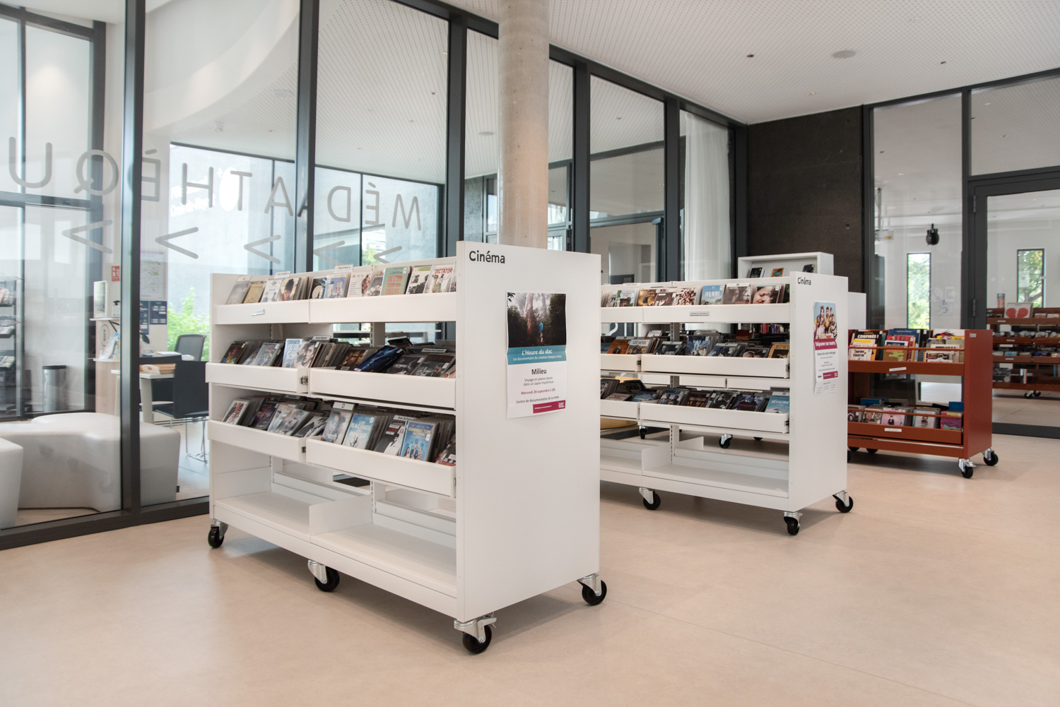 The shelving is available in several heights with visible or non-visible castors for easy mobility. The browsers are available in fixed or pull-out versions and include grooved rubber matting which keeps books upright. Dividers for the browser are included.