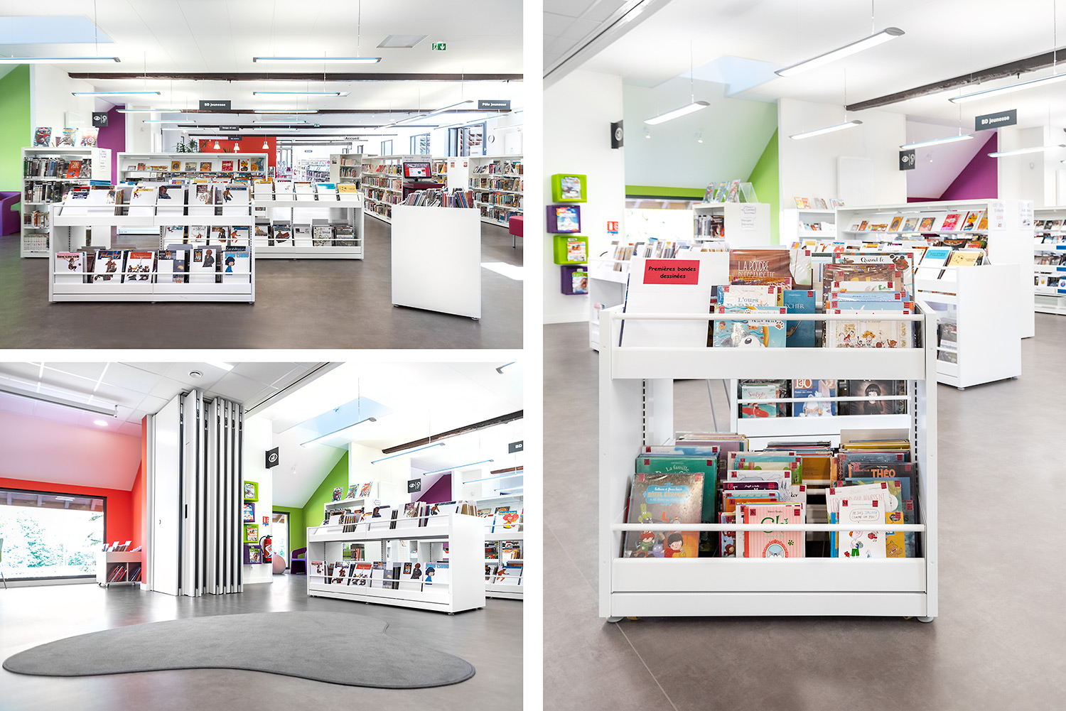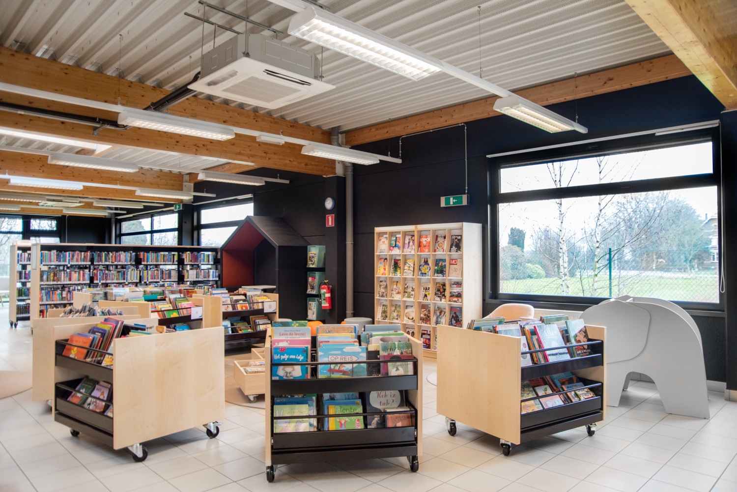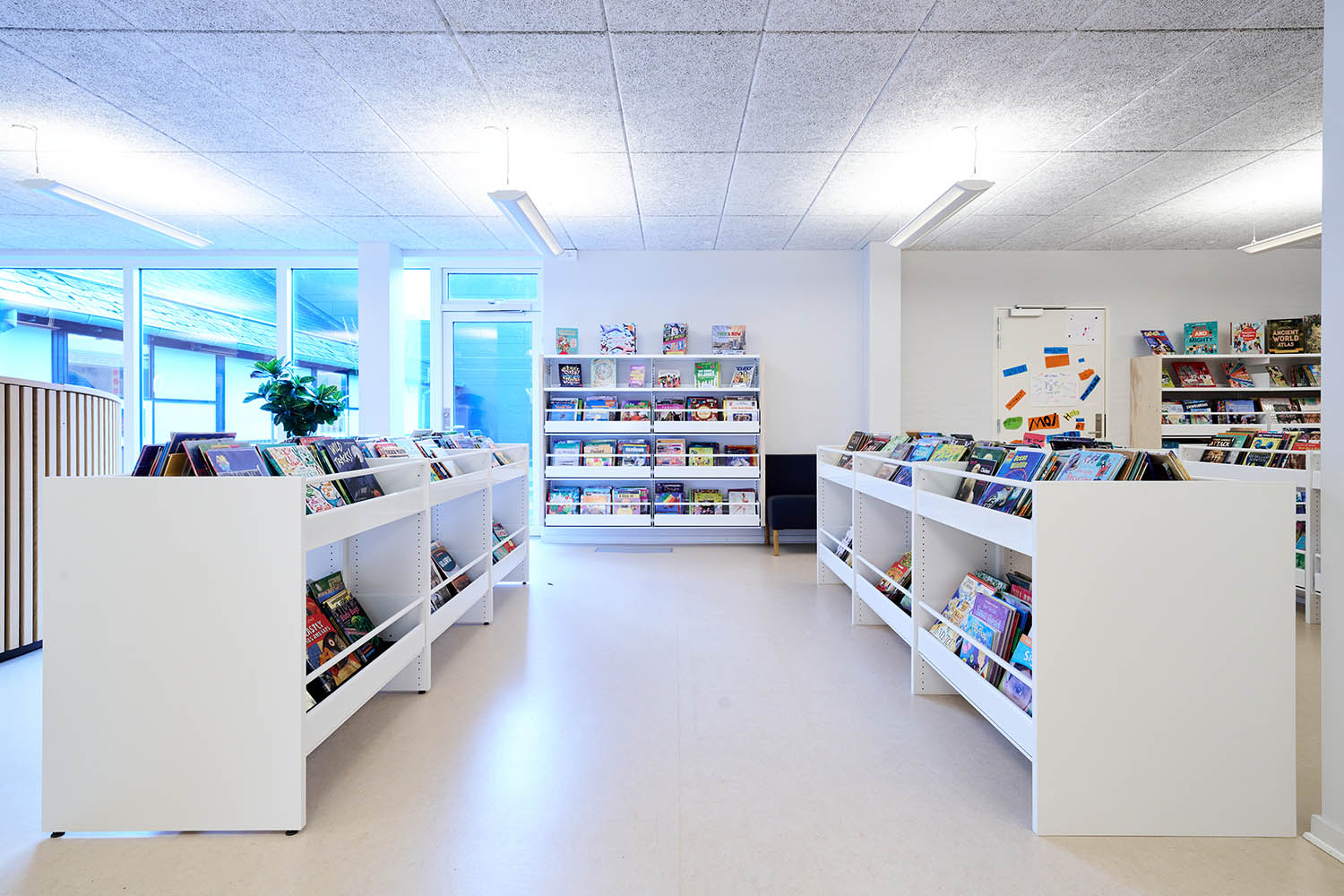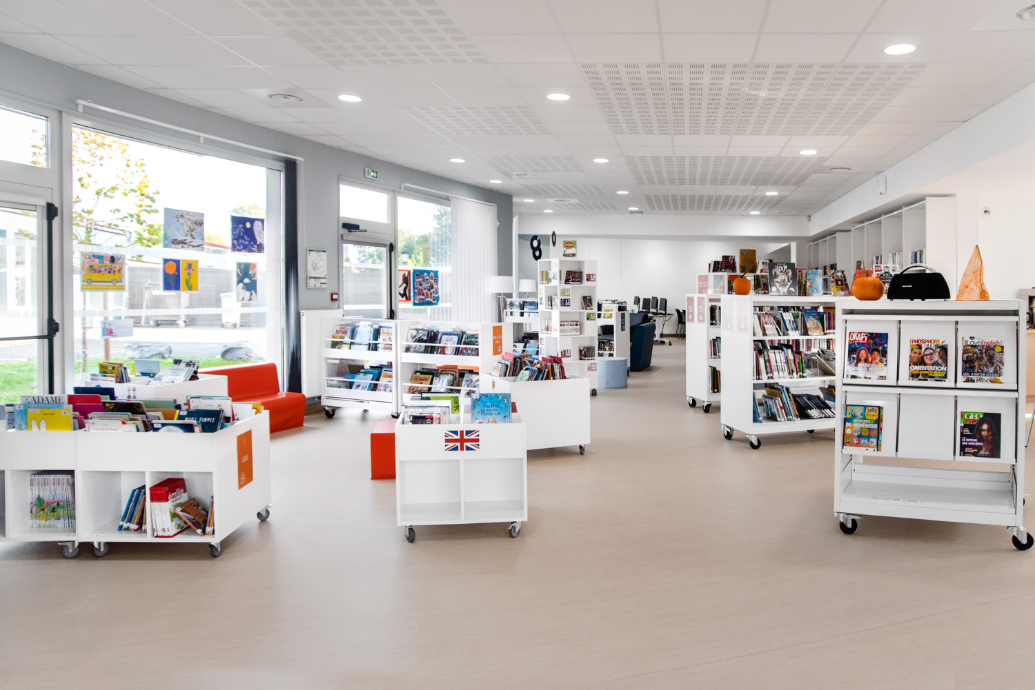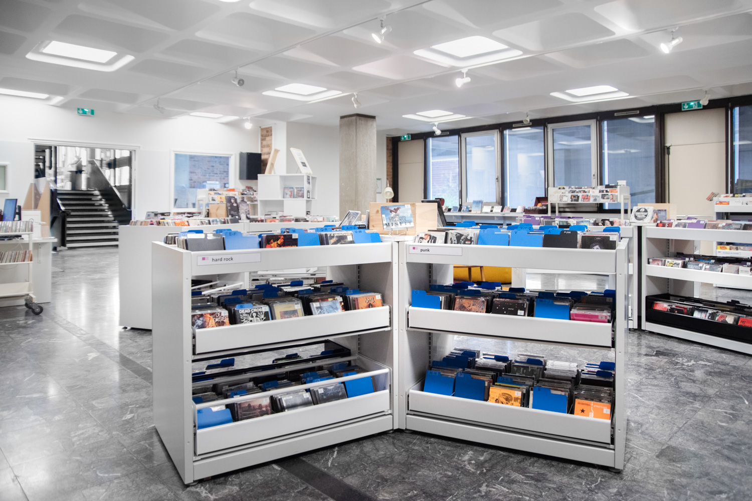 The shelving is available in several heights with visible or non-visible castors for easy mobility. The browsers are available in fixed or pull-out versions and include grooved rubber matting which keeps books upright. Dividers for the browser are included.