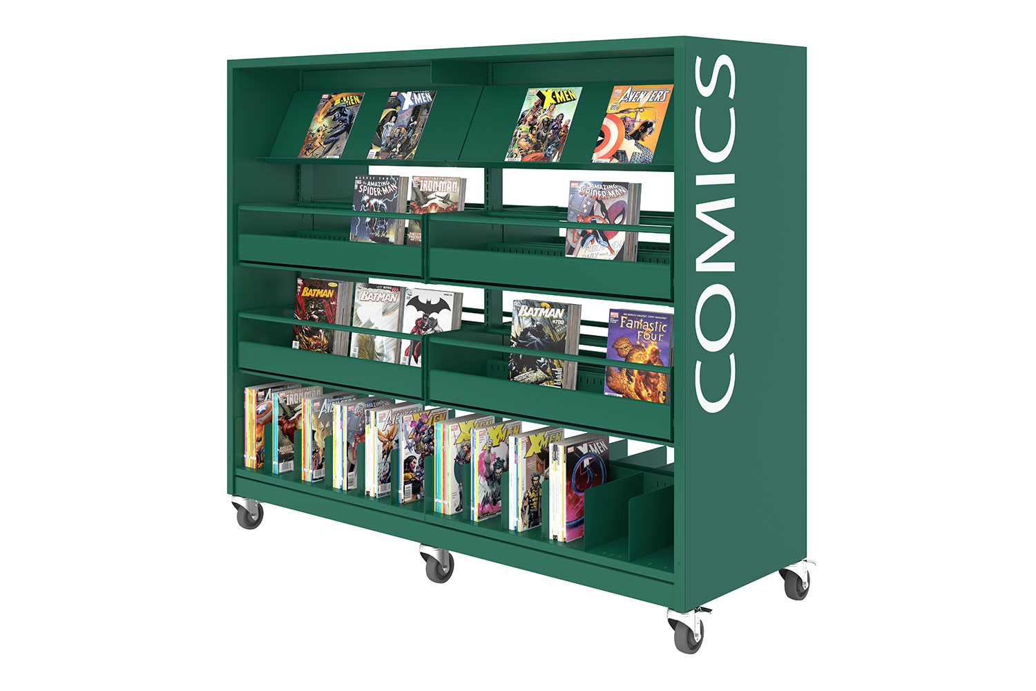 The 60/30 shelving system provides a framework where you have the possibility of building your own personalized shelving system that fits the theme of your library and target group.