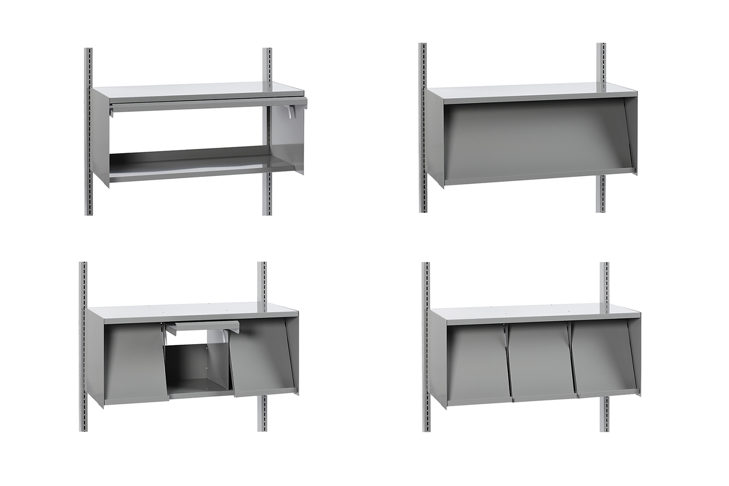 This can be done with different types of shelves or various functions elements and thereby create unique shelving systems.