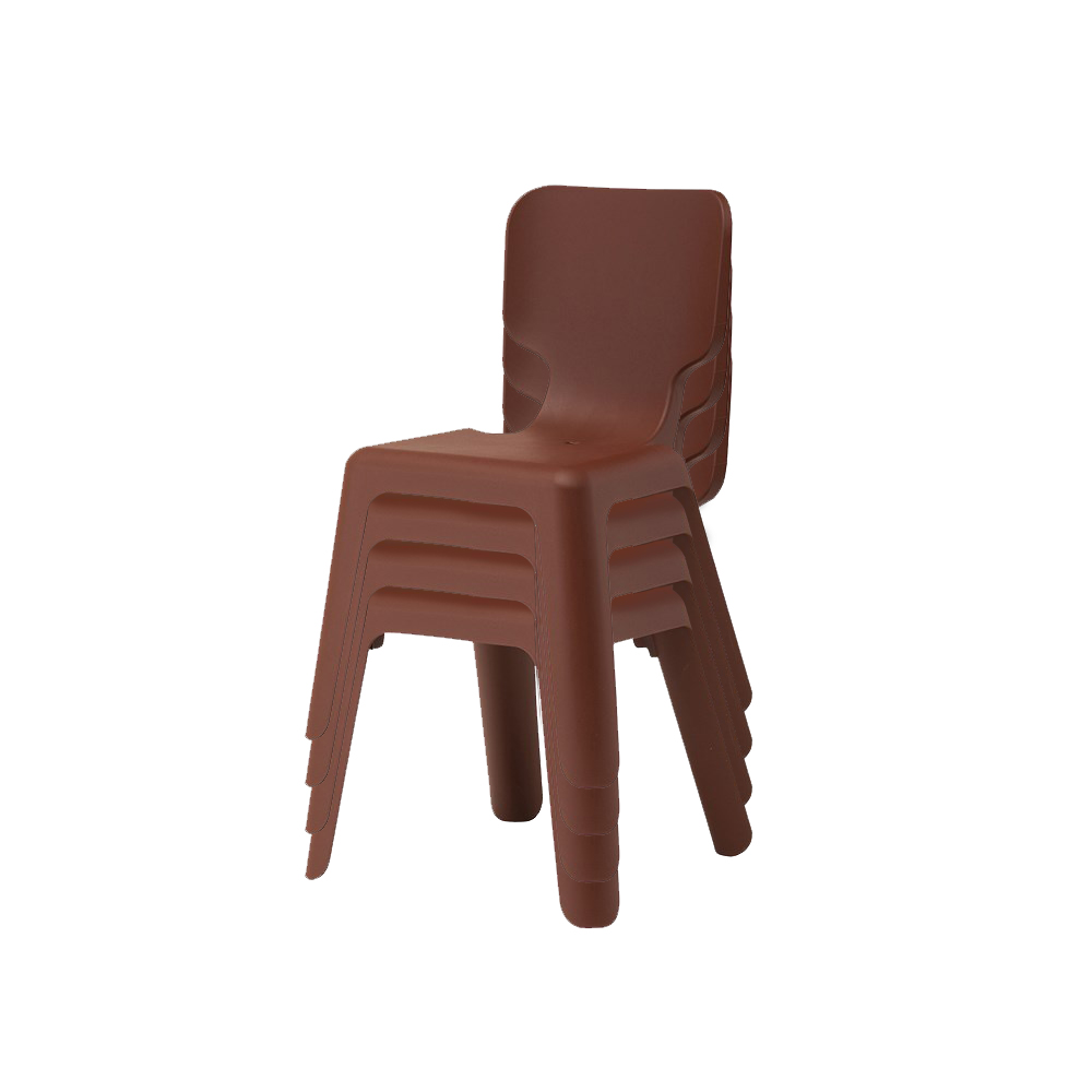 A light, stackable children’s chair with a unique seatback. The back is decorated with branches, leaves and even little birds here and there.