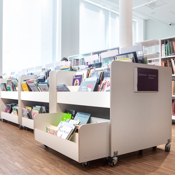 We use laminated birch plywood – here with visible edges. All to create both a durable surface and a lasting construction. Perfect for the most demanding library environments!