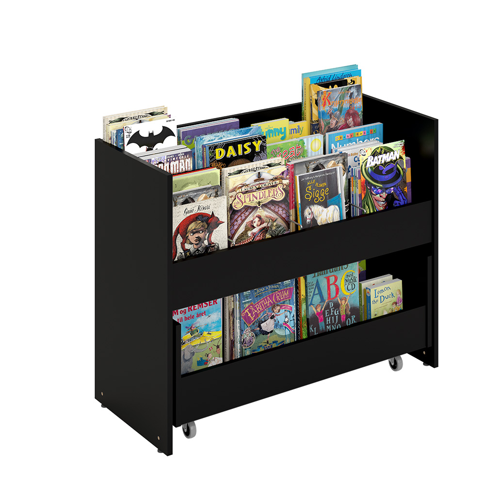 Grooved rubber mats in the top compartments ensure that even a small number of books will stay upright.