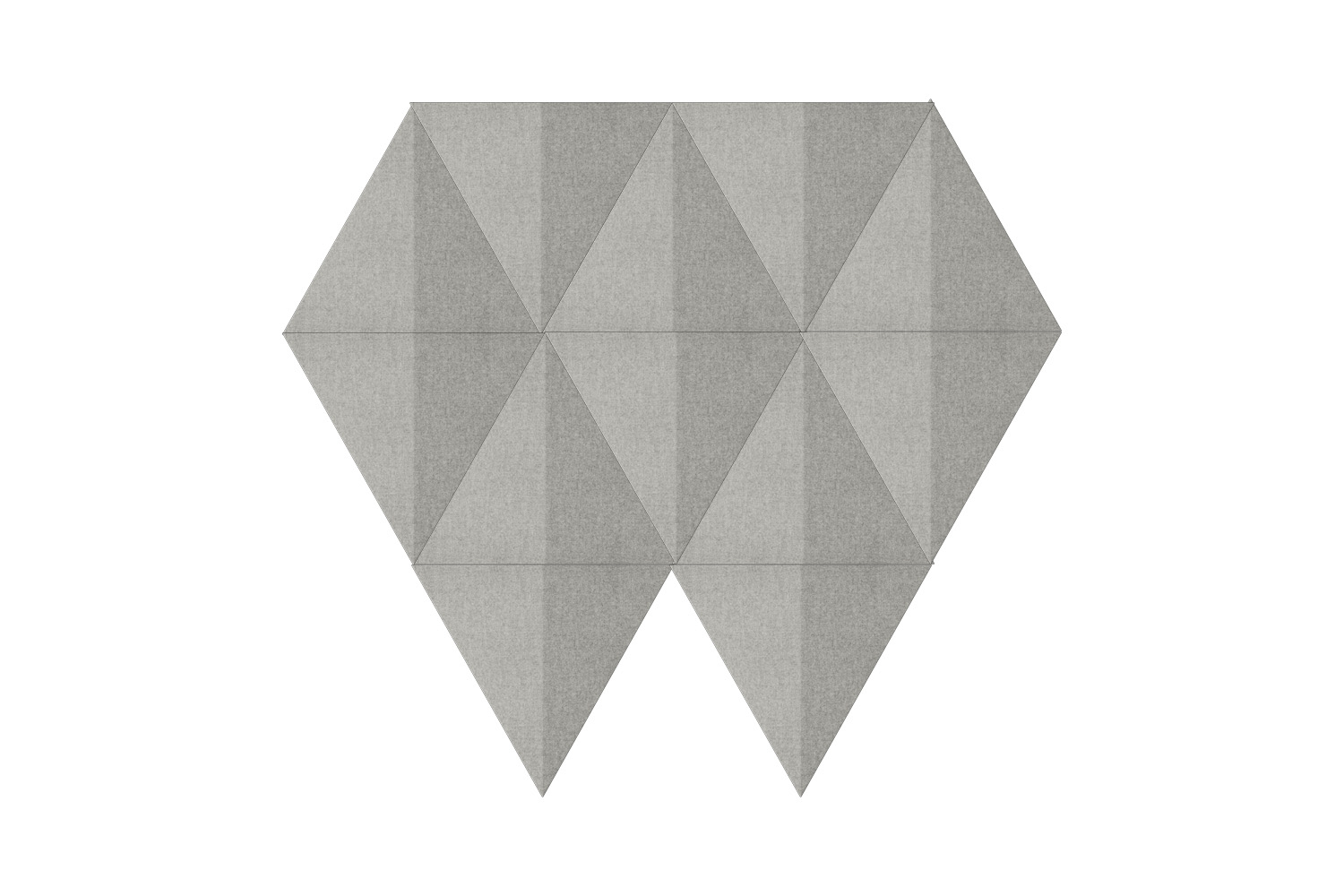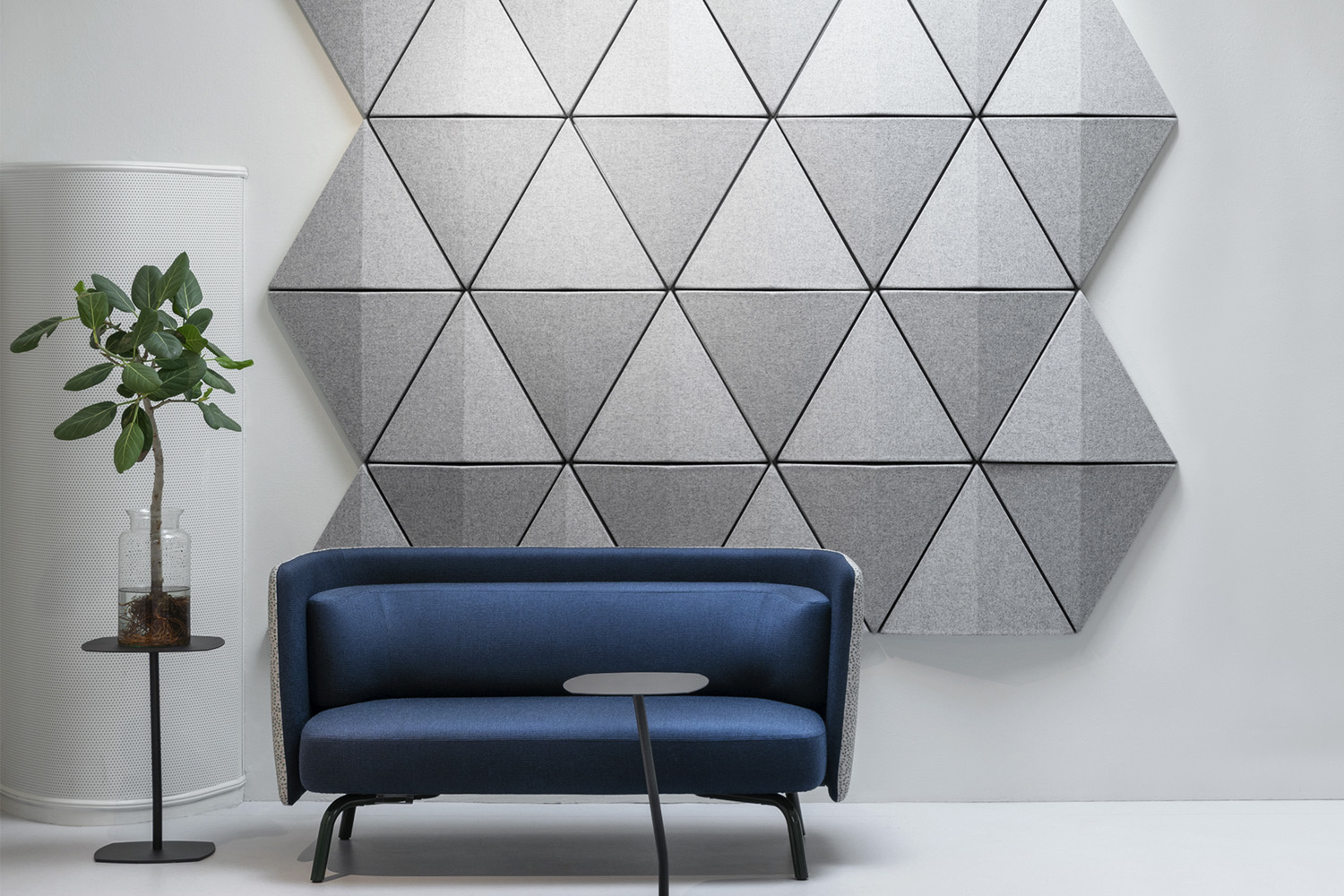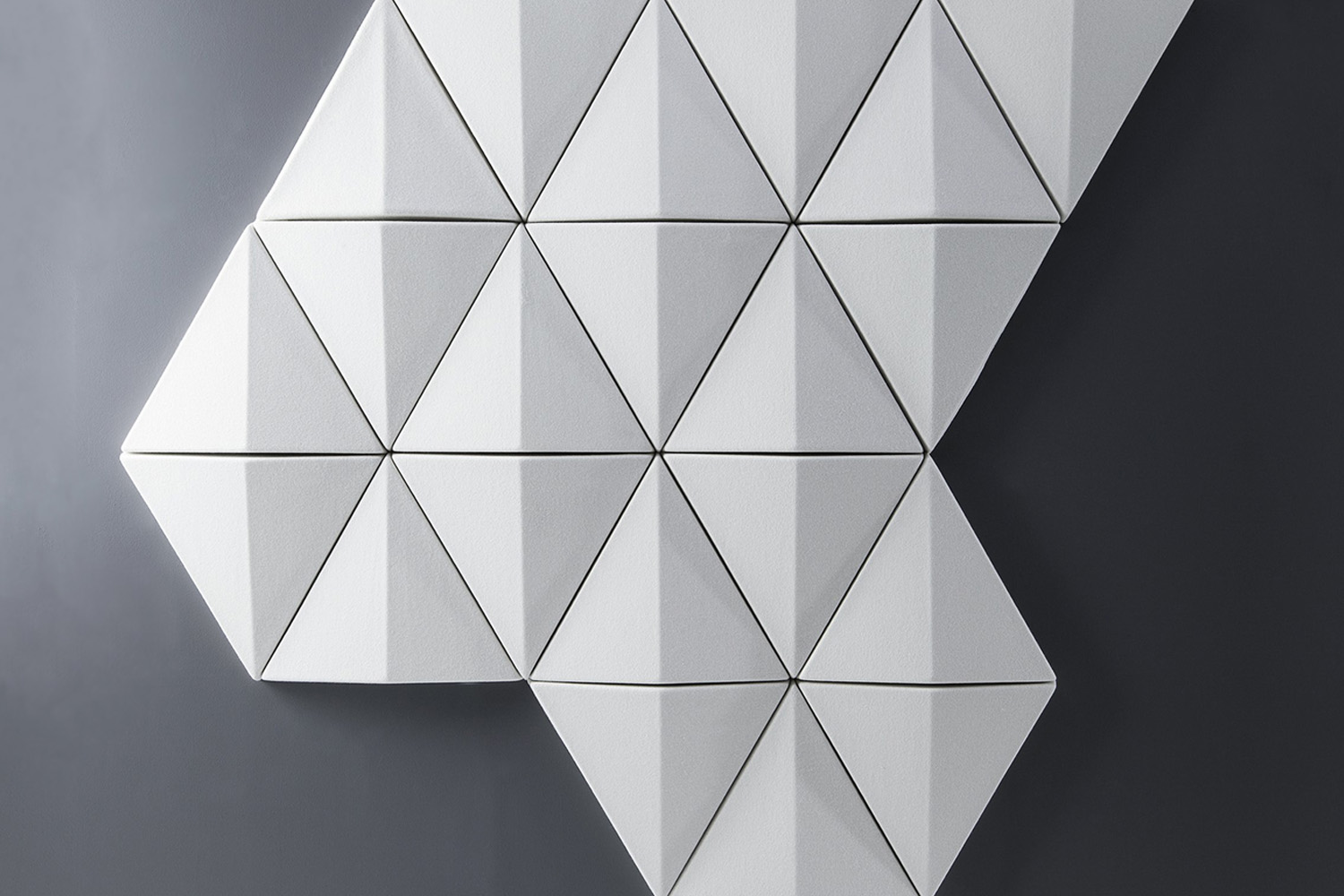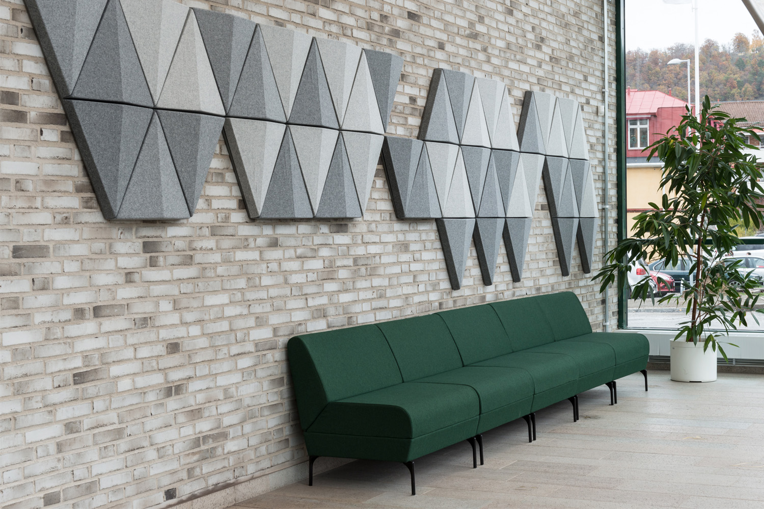 The triangular, sound-absorbing panels not only provide a playful and attractive expression but can also be customised and combined as needed, allowing for unique and functional wall designs. Panels can be placed horizontally or vertically, enabling the creation of fun patterns on the wall.