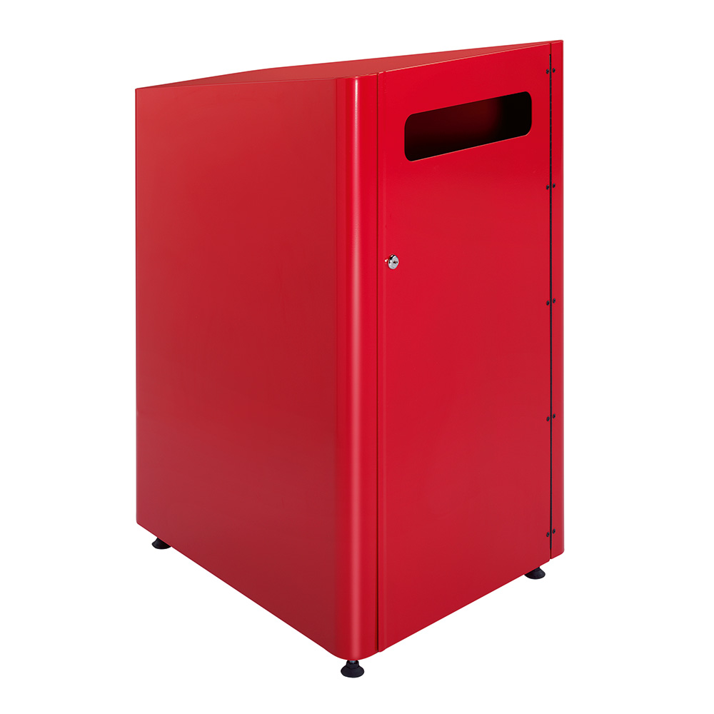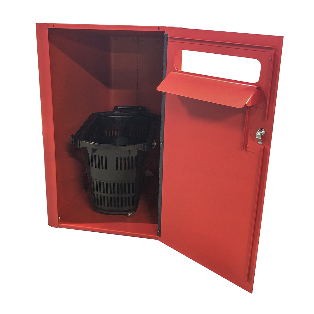 Lockable cabinet equipped with an anti-theft fitting at the bottom. Supplied with basket on wheels and icon signs for books and CDs/DVDs.