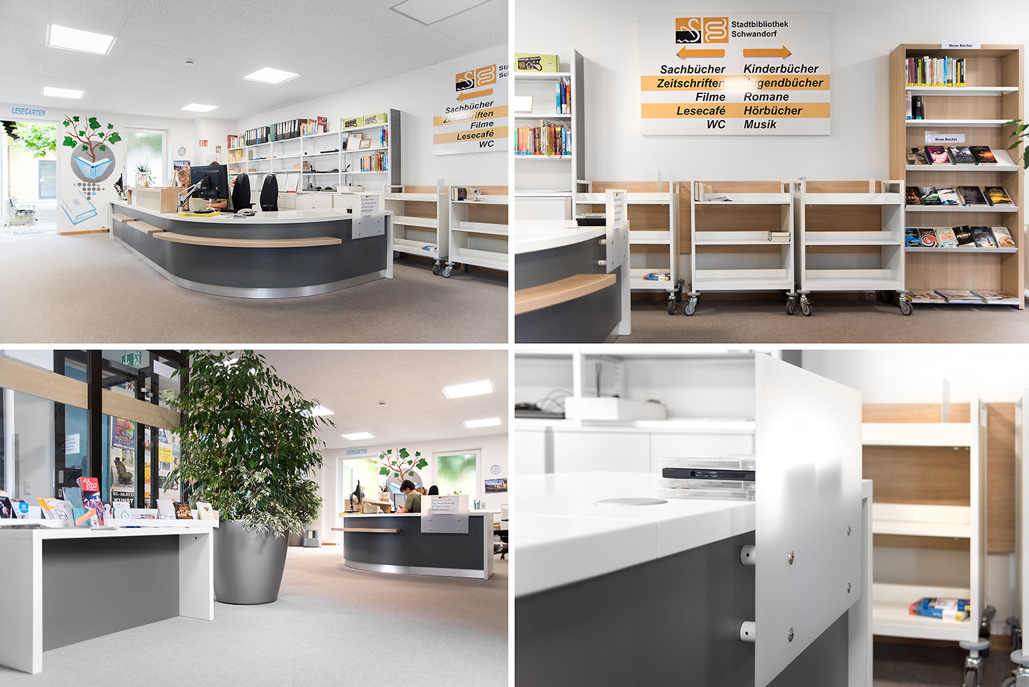 The robust shape and versatile design of this book trolley make it adaptable to the specific requirements of the library or institution at hand. The numerous functions such as fastened or removable middle separators; slanted or straight shelves and wooden or metal shelves, culminate in a multi-functional book trolley that not only meets the everyday prerequisites of a functioning library but also the special demands.
