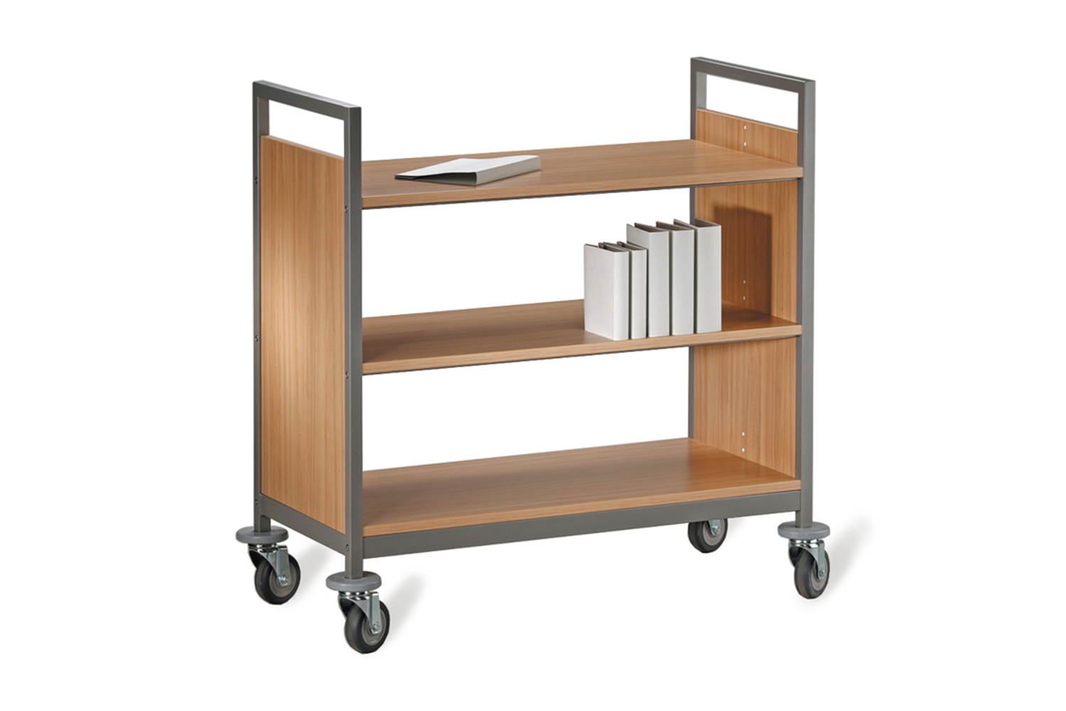 The Classic Line book trolley is available in 7 models and with protective rubber rings above the castors which help prevent damage to building walls and doors.