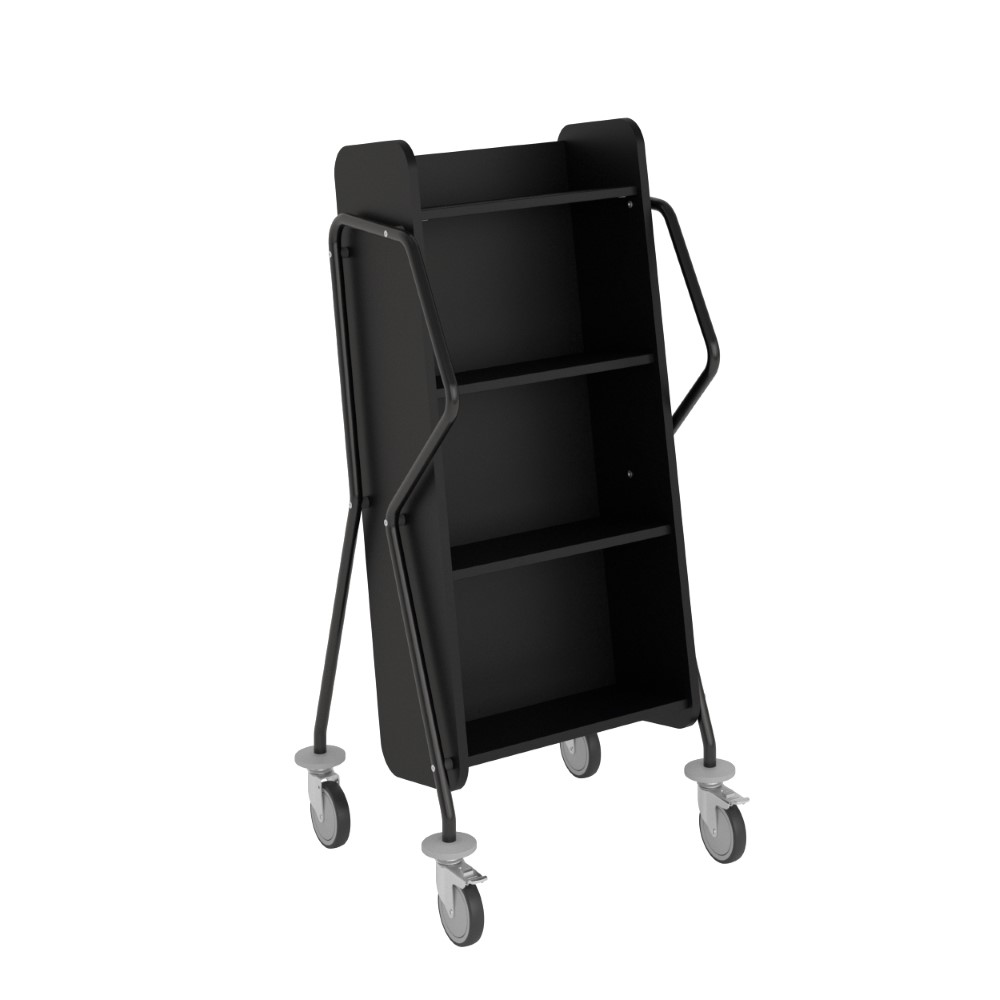 Ergonomic, user-friendly, single-sided book trolley with 4 shelves. Generous amount of clearance between shelves to accommodate larger books.