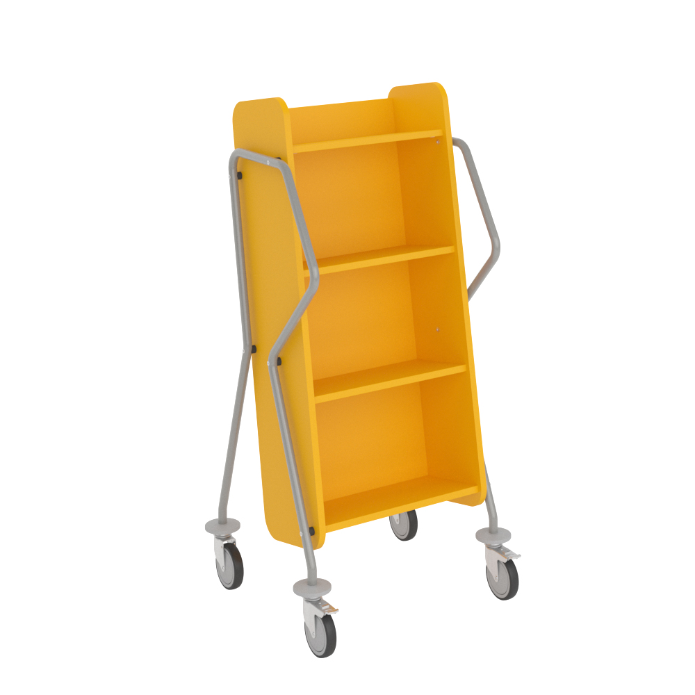 Ergonomic, user-friendly, single-sided book trolley with 4 shelves. Generous amount of clearance between shelves to accommodate larger books.