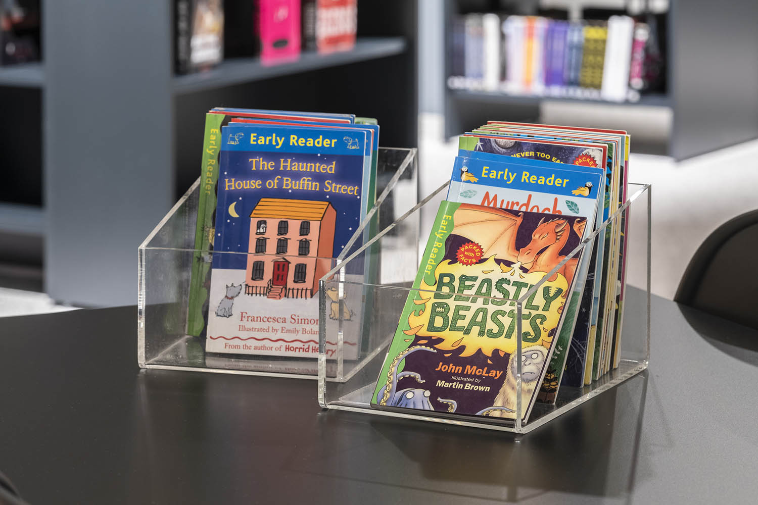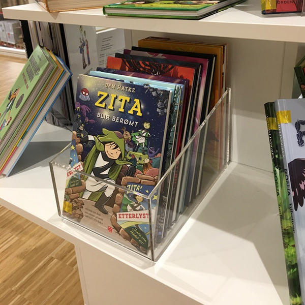 Functional and neat display box with lower front panel which allows for browsing.