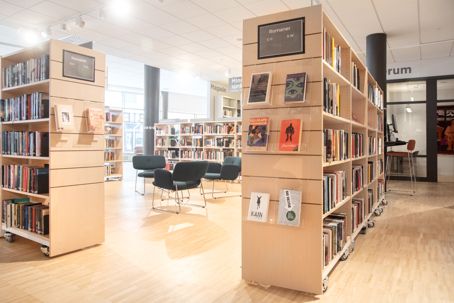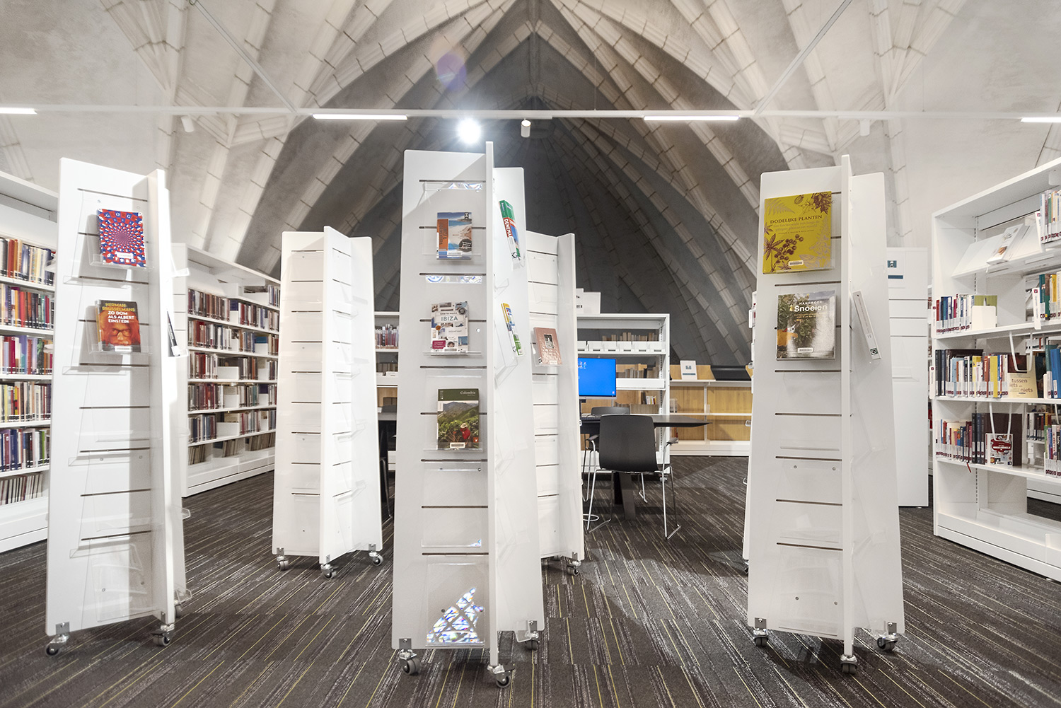 The displays are easily moved around to create flexible display solutions for books, AV-media such as CD/DVDs, magazines, brochures, etc.