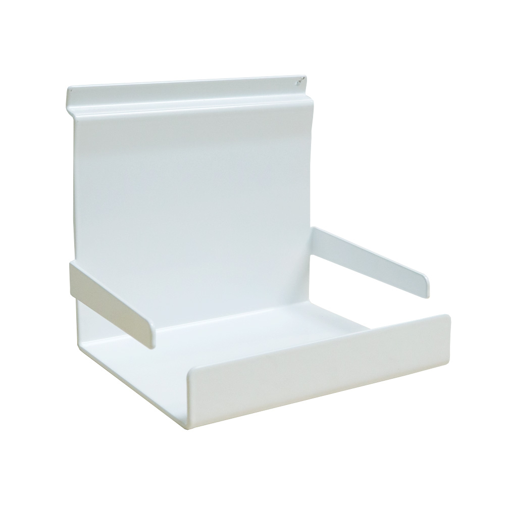 A collection of solid steel holders suitable for slat display panels and Quattro book tower.