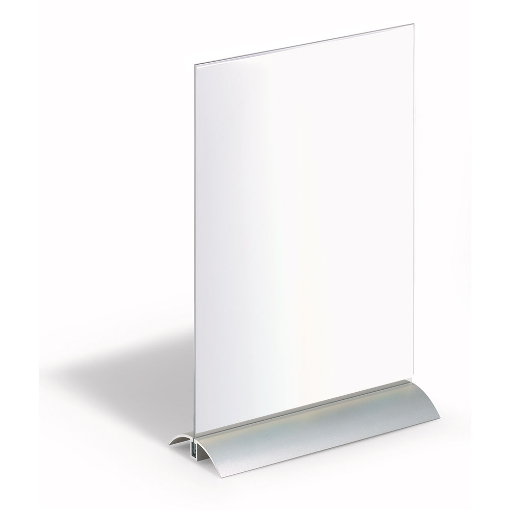 Exclusive double-sided sign for tables, countertops, shelves, window displays, etc.