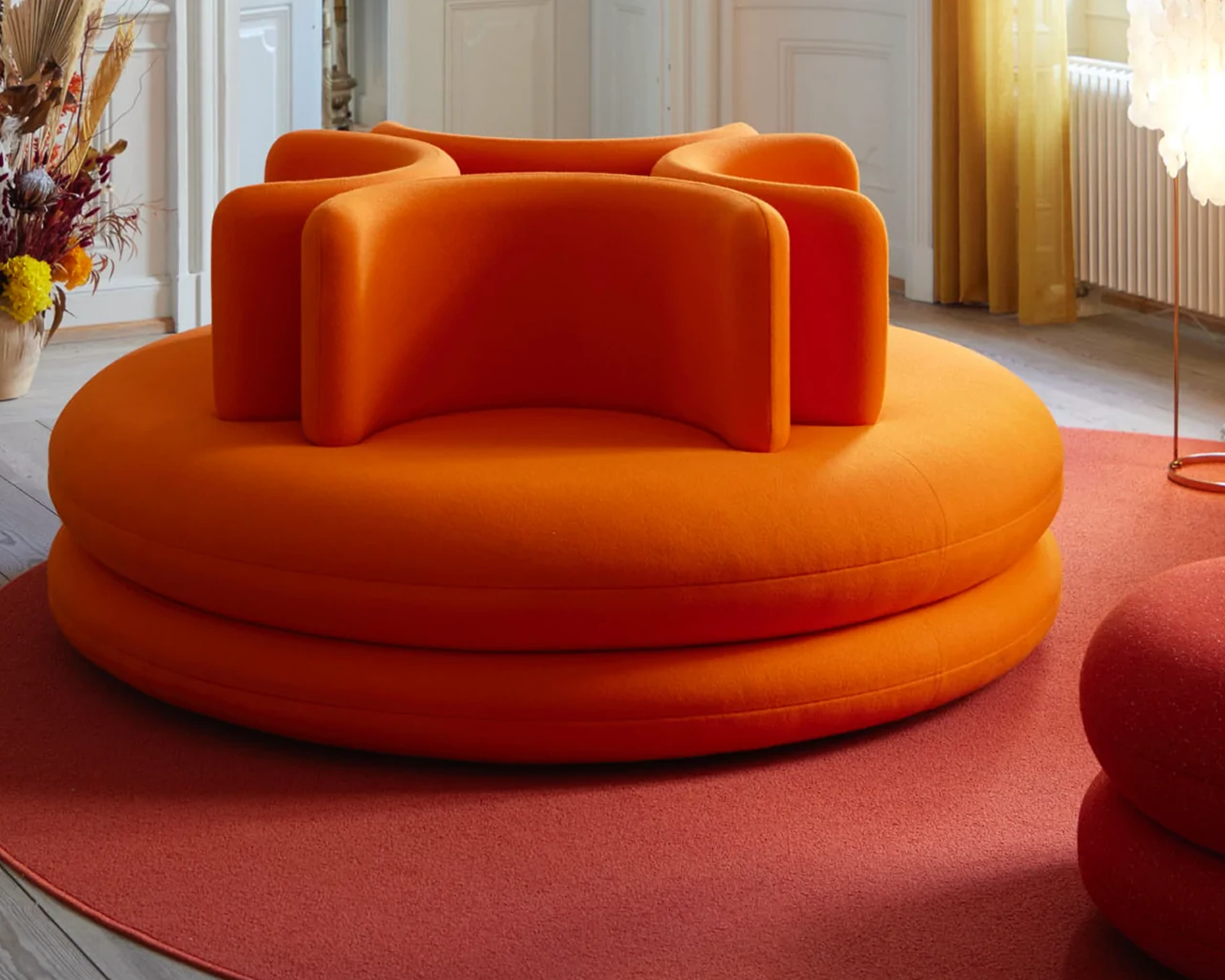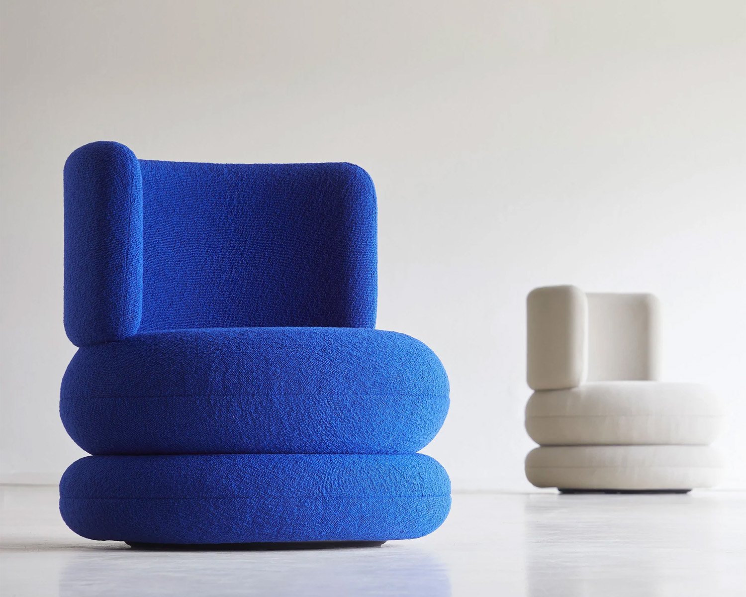 The Easy Sofa is one of the most iconic and playful pieces of the design catalogue that provides four individual seating with its smart round design. This is complimented by the Easy Chair with its soft shape and form and big u-shaped backrest that gives you great seating comfort.