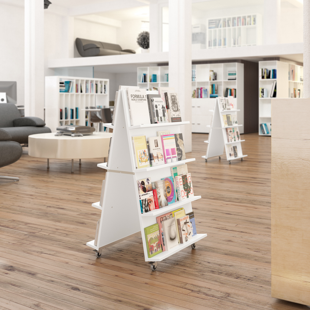 With our mobile A-display you can display books in open areas or entrances individually or in a group e.g. to make a complete display wall.