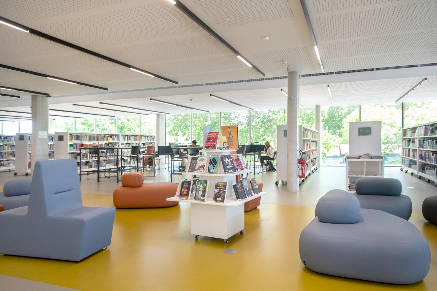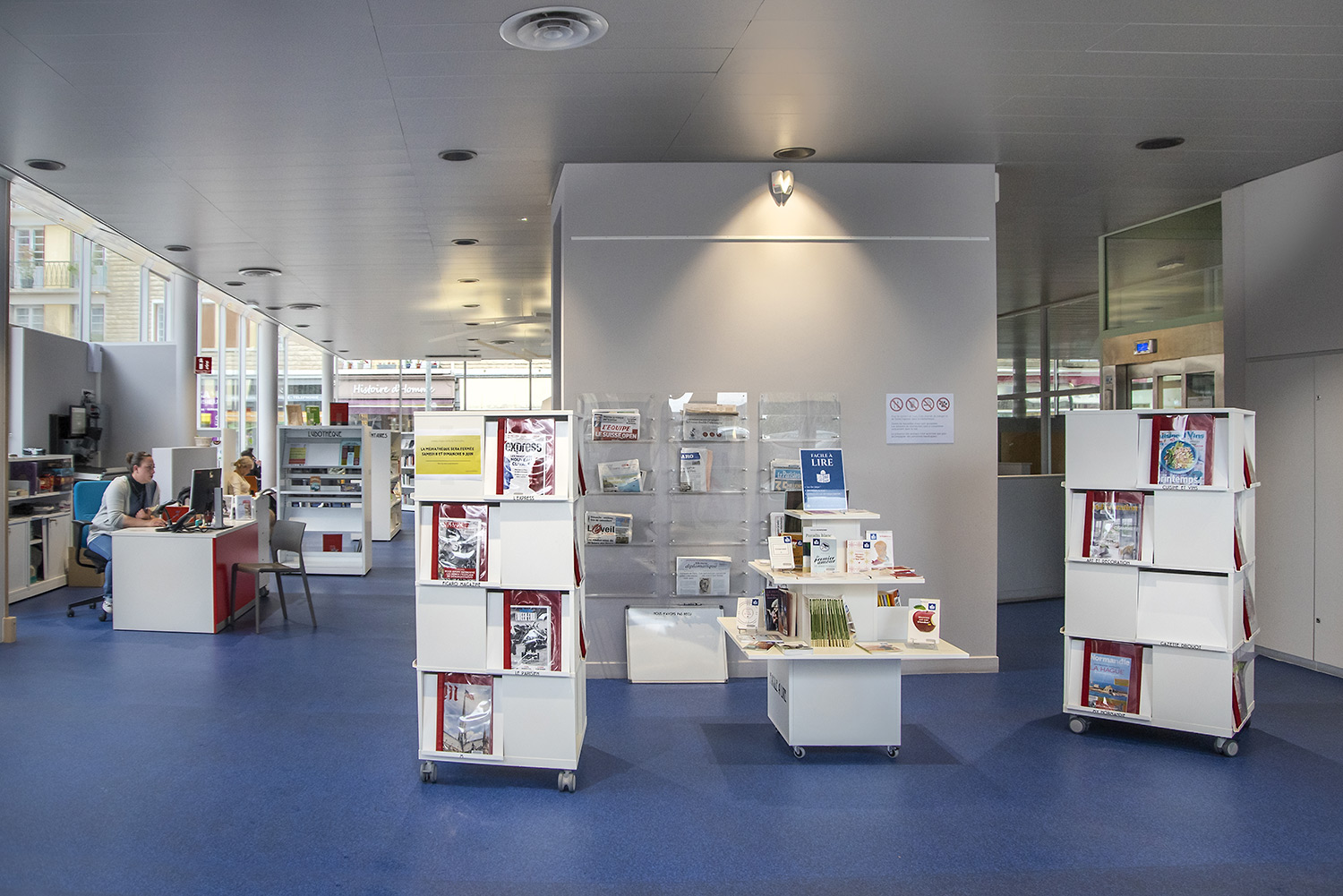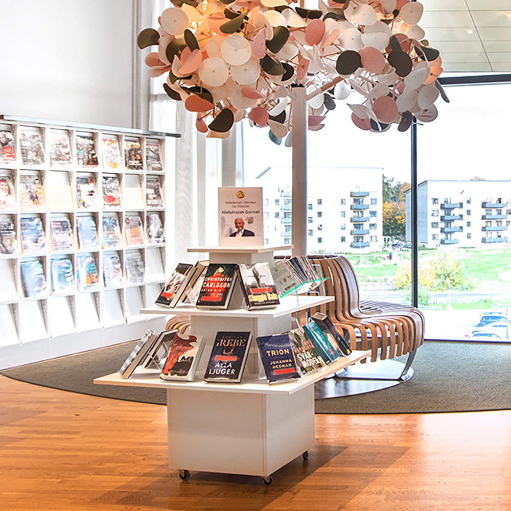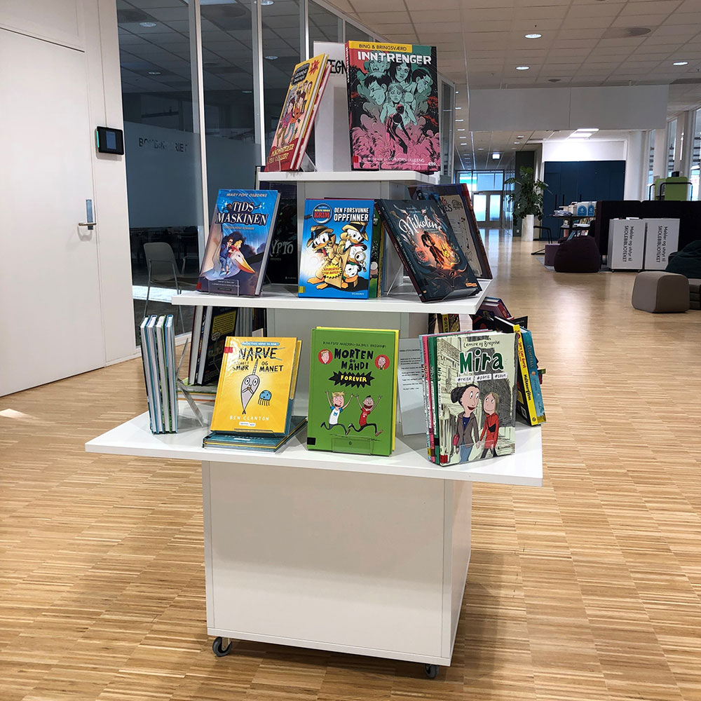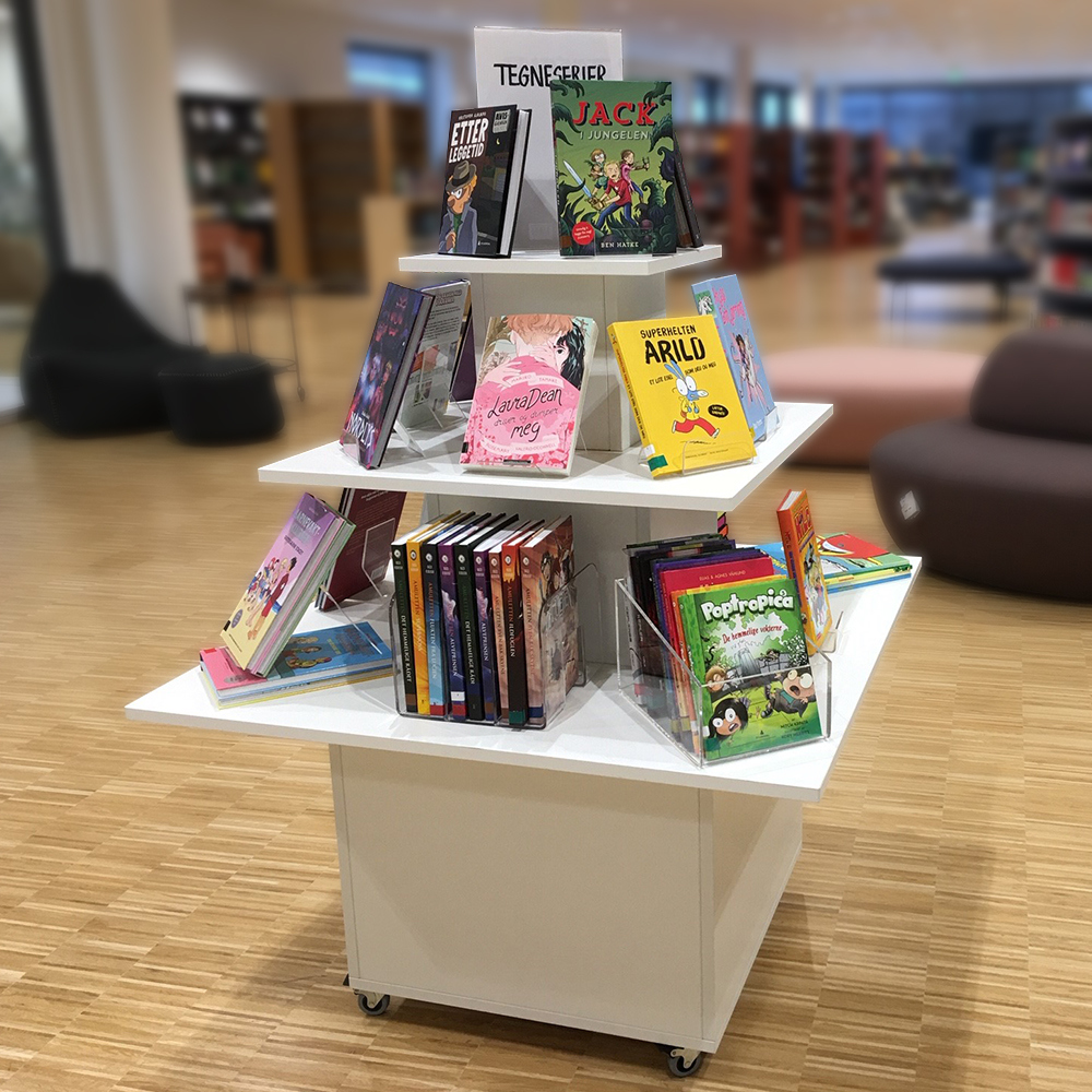 Functional, versatile podium for display of books and/or other media. Ideal as an eye-catcher at the entrance or other focal areas in you library.