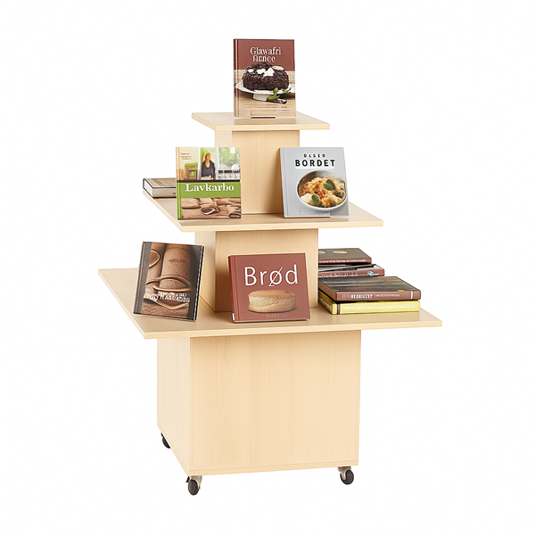 Functional, versatile podium for display of books and/or other media. Ideal as an eye-catcher at the entrance or other focal areas in you library.