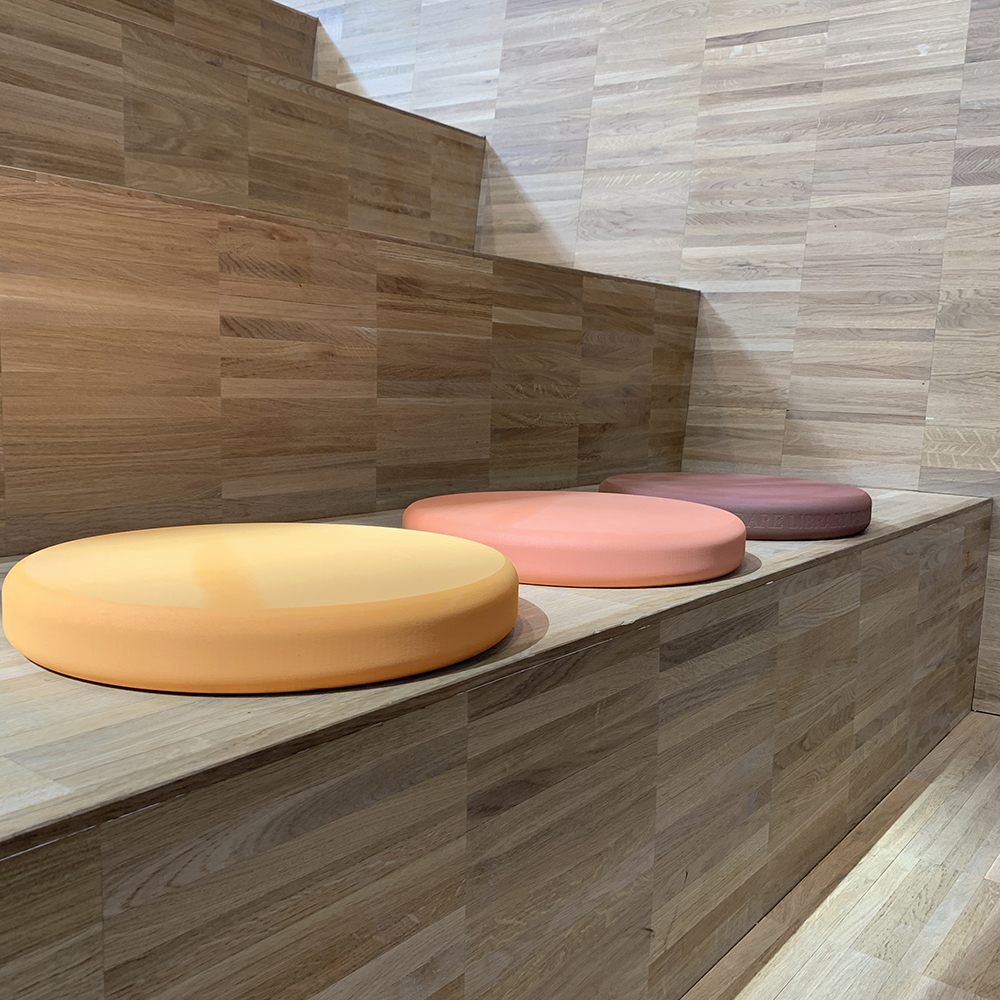The cushion is available in 2 designs and various colours and are ideal for use on the floor, benches, staircases etc.
