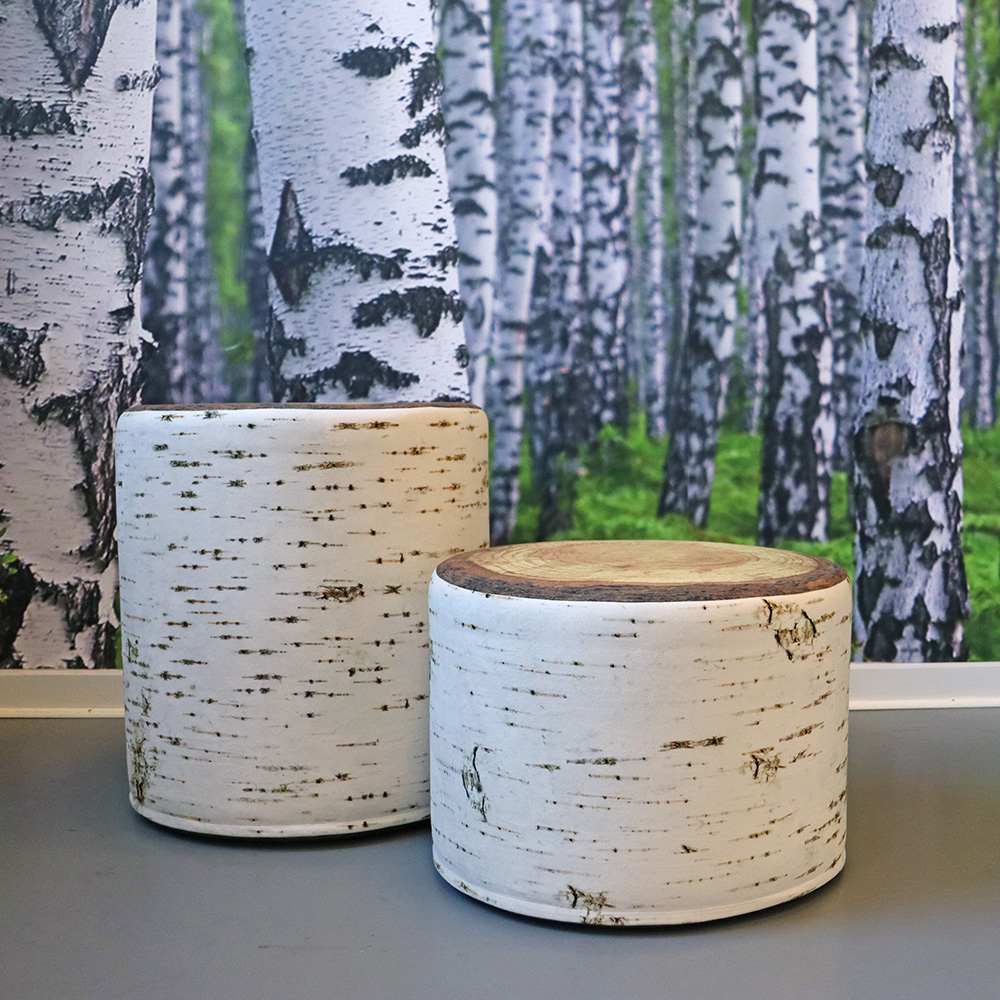 The poufs are upholstered with a thick velvety soft fabric with photo-realistic digital print with an amazing 3D effect for nature inspired environments.