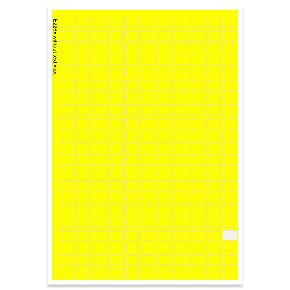 Self-adhesive, die-cut labels on sheets with optional text, e.g. for a classification system.