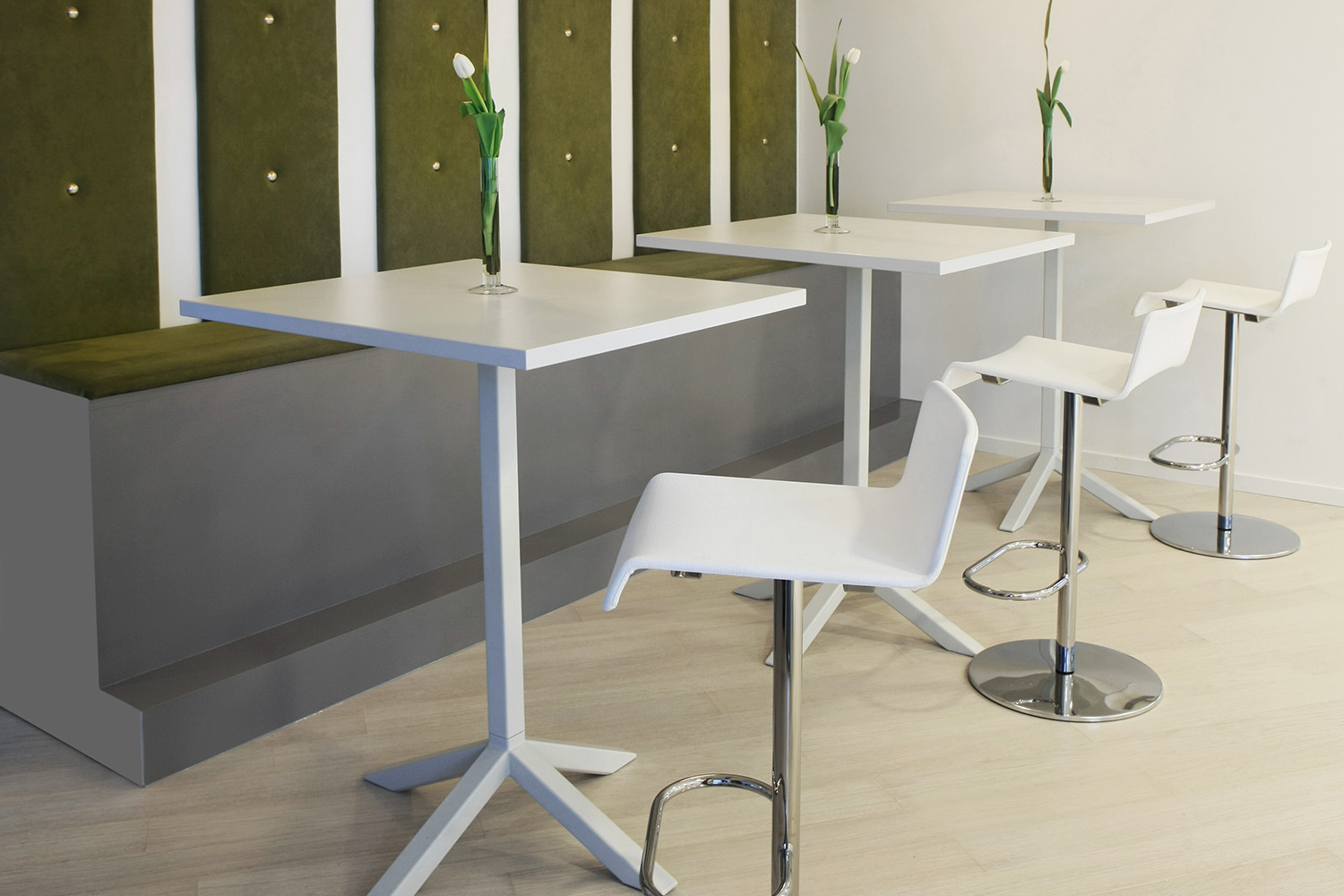 Funk is also available as a bar table, suitable for café and study areas. The bar table likewise comes with a T-leg base or a four-legged star support in two sizes.