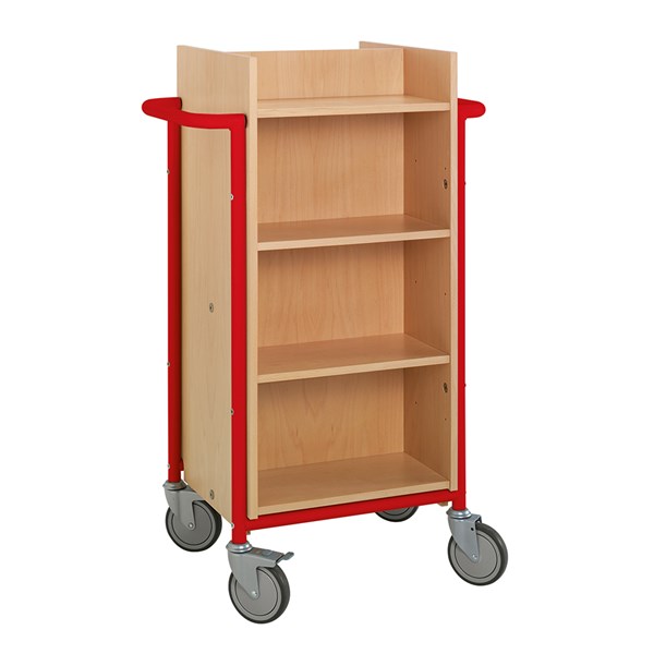 This book trolley can be used as a mini shelving system that can be moved around in the library where needed.