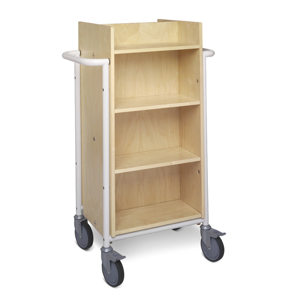 This book trolley can be used as a mini shelving system that can be moved around in the library where needed.