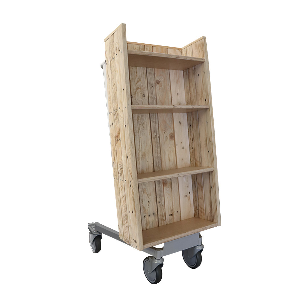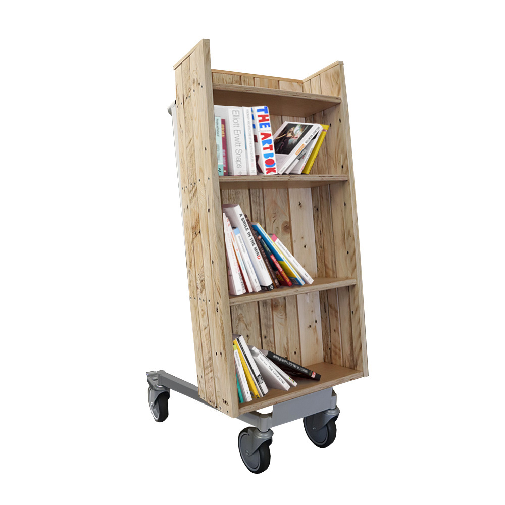 User-friendly, single-sided book trolley with 4 fixed shelves.