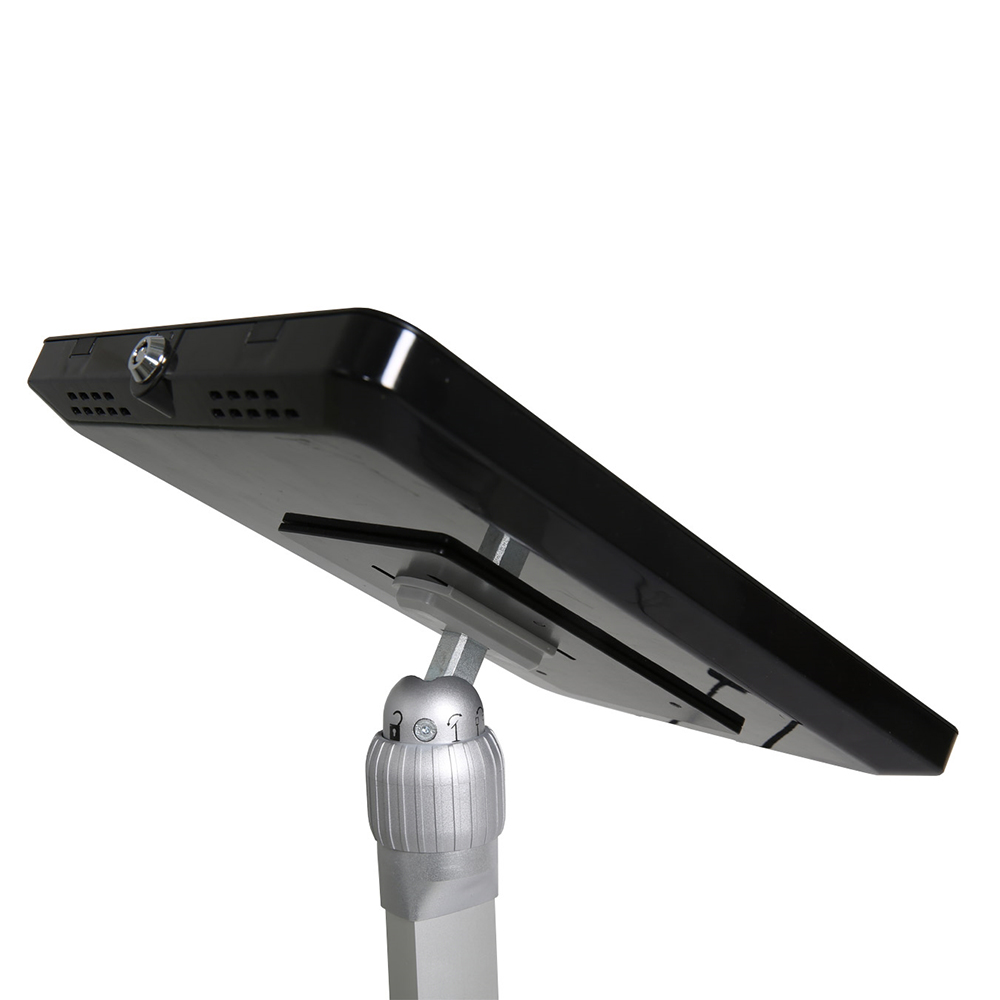 The tablet holder can be adjusted to the perfect reading angle and positioned both vertically and horizontally. It is height adjustable to fit both sitting and standing height and fits almost all tablets.