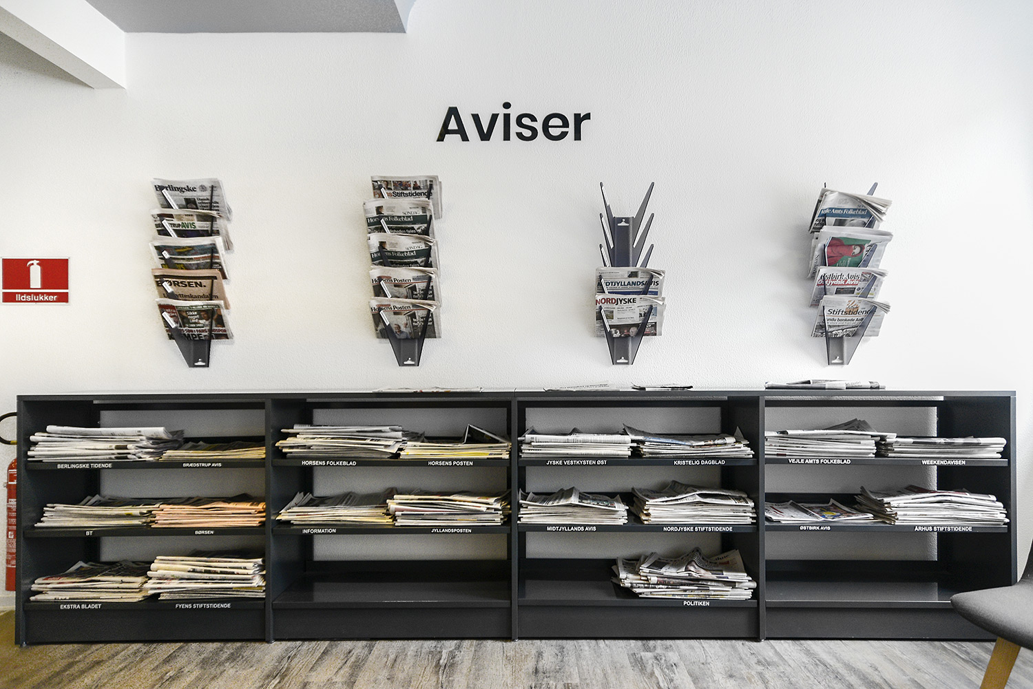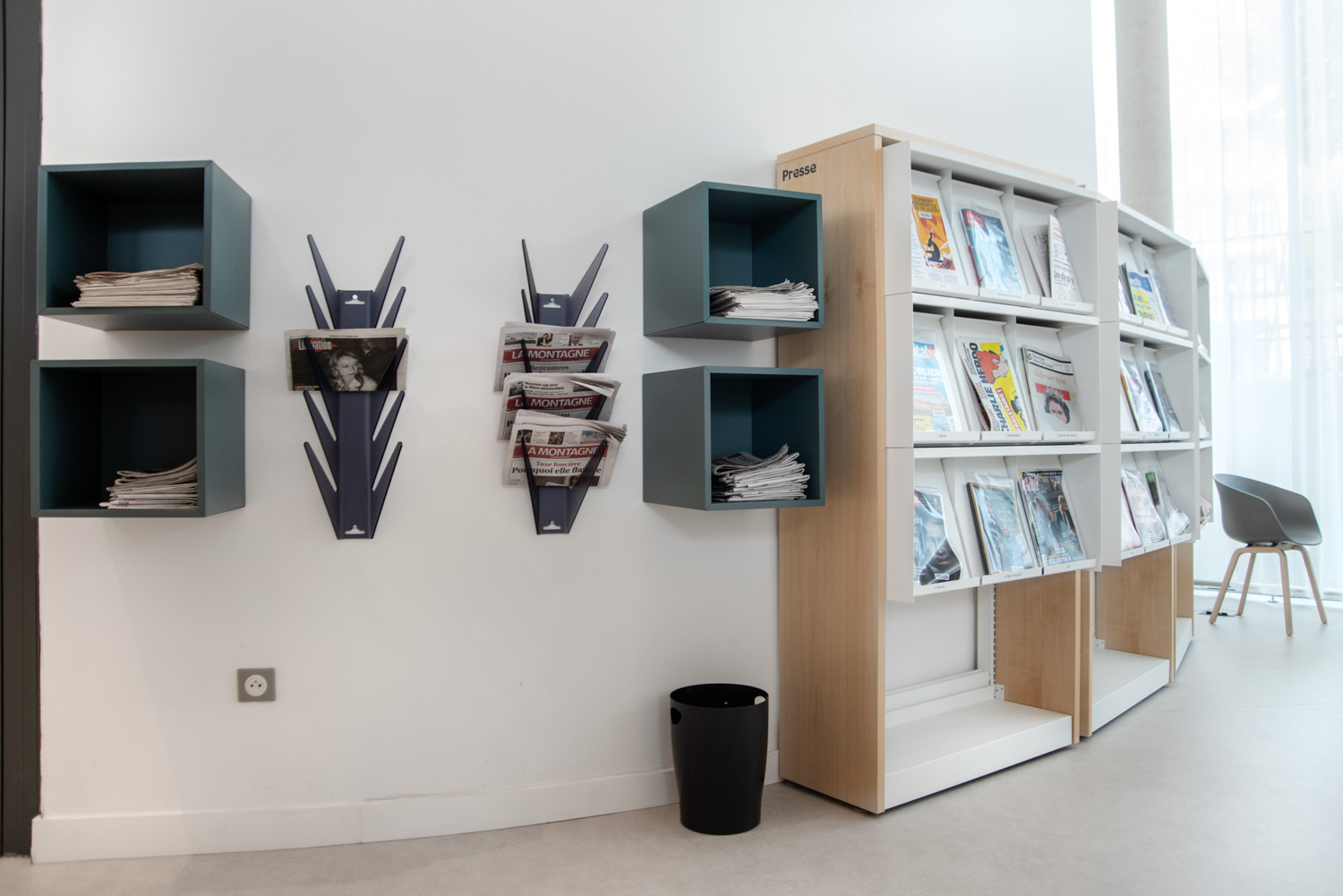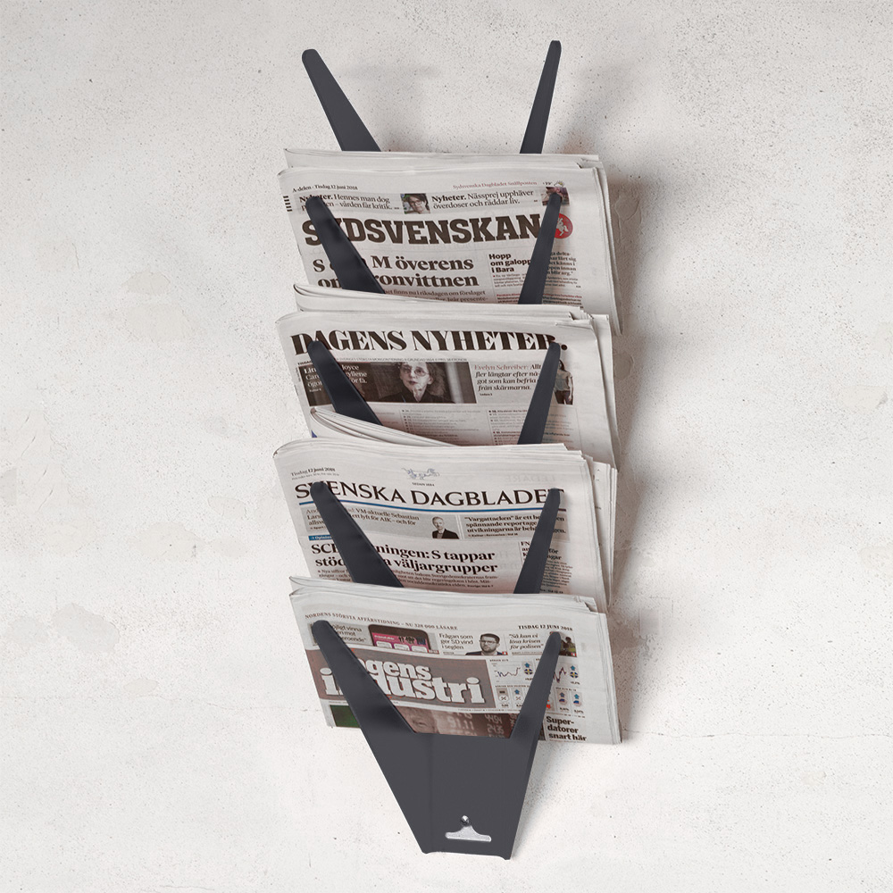 Ideal wall-mounted acrylic holder with keyhole attachment for newspapers and other publications.