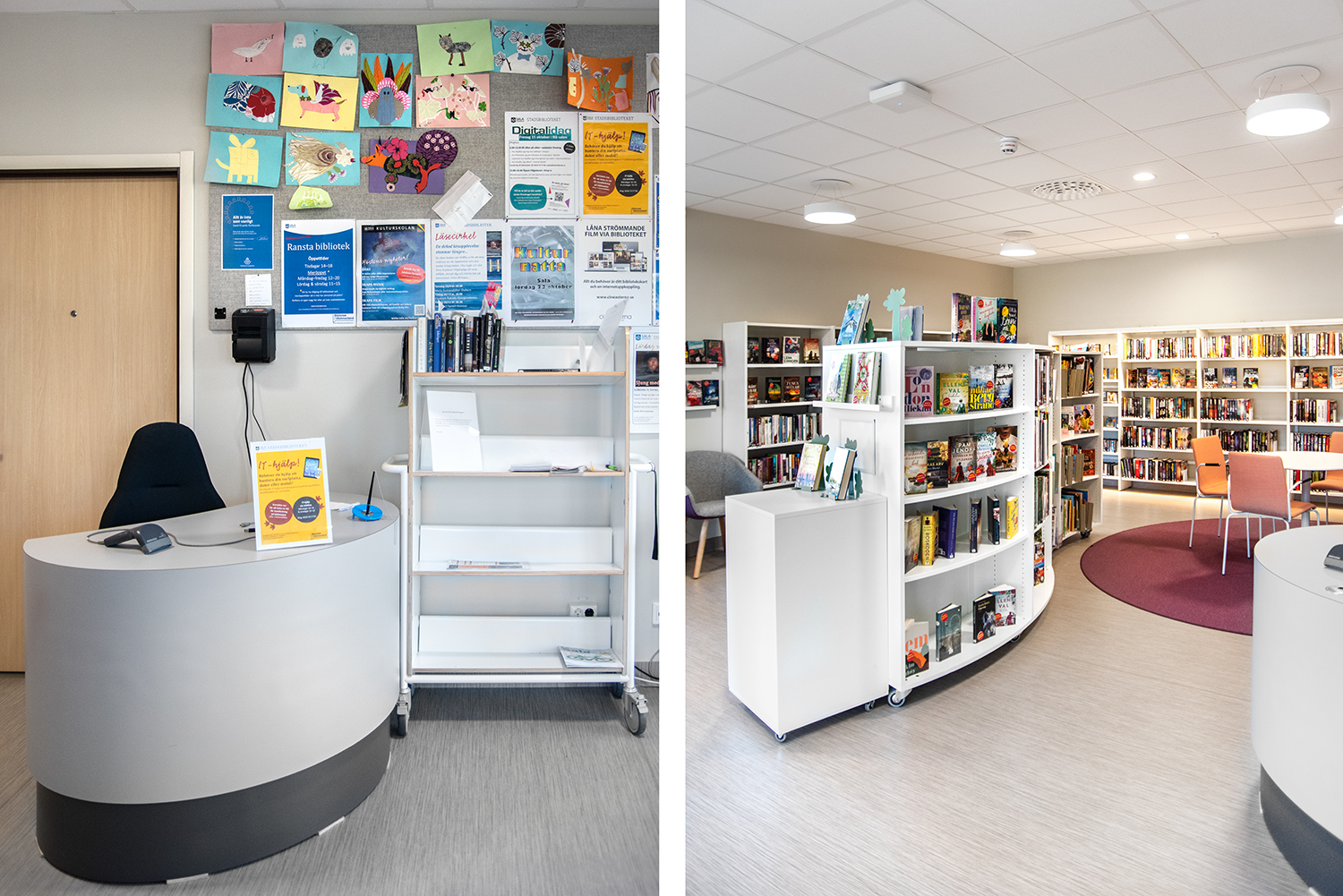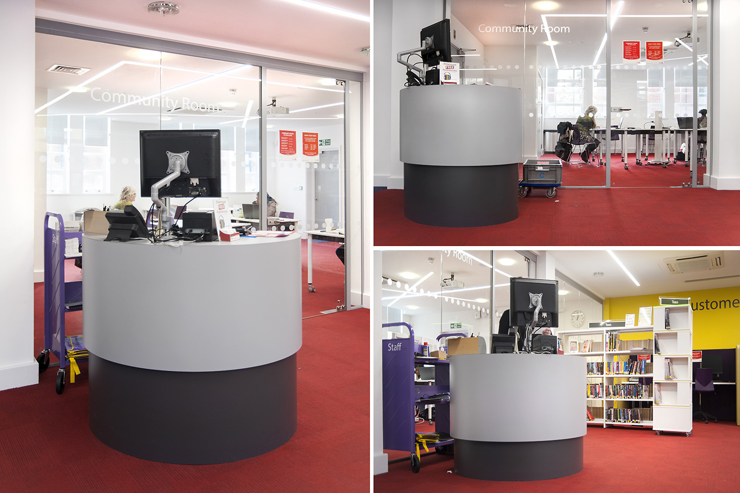 Stylish, compact counter in a clean and functional design. Ideal for large libraries as information desks or search stations and/or for school libraries as reception desks.