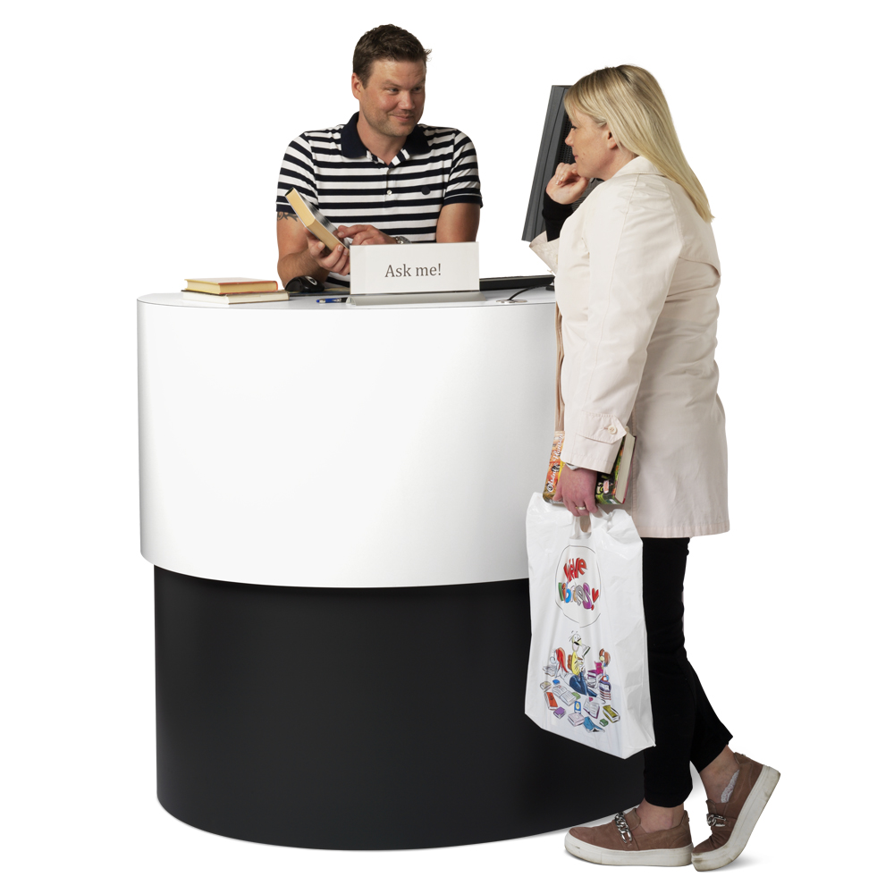 Stylish, compact counter in a clean and functional design. Ideal for large libraries as information desks or search stations and/or for school libraries as reception desks.