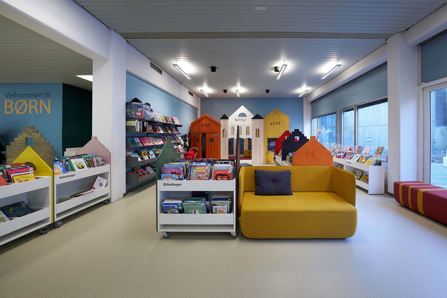 Paying homage to the quaint, coastal village of Sæby, the new children’s library was designed and furnished to reflect local scenes.