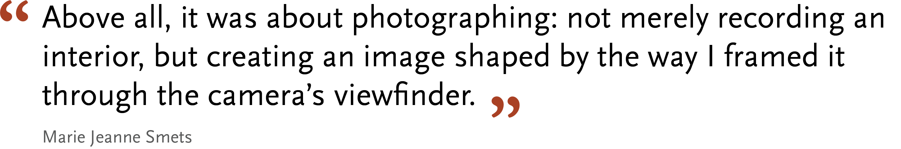 The road to photography did not begin with a camera, but with graph paper and interior sketches. In 1981, Marie Jeanne Smets co-founded Schulz Benelux, where she worked as an interior designer responsible for projects throughout the Benelux region. The company’s furniture was supplied by Schulz Speyer in Germany, and already then, cross-border collaboration was a natural part of her work.