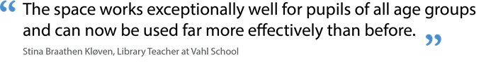”We held a drawing competition where pupils developed solutions filled with ideas and strong engagement. We received long wish lists for a ‘dream library’, many of which were incorporated into the final layout. For example, the pupils wanted more colour in the library and far more places to sit, relax, and read. We hardly had that before – and I missed it too. This has been crucial to how well the space functions today.”