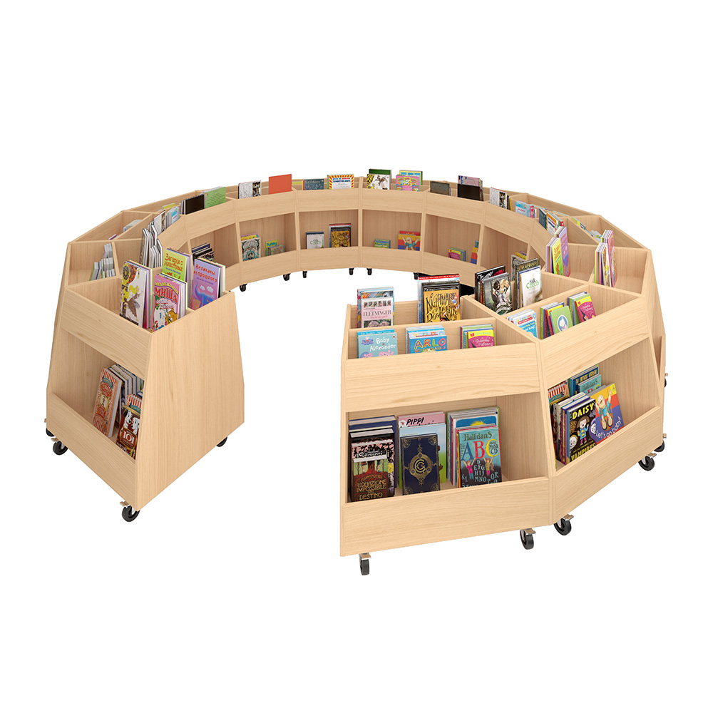 The distinctive shape allows multiple units to be combined into gentle curves, flowing layouts, or clearly defined zones. Ideal for themed displays, cosy reading corners, or central features, Kaja is open, inviting, and easy to rearrange – supporting both organisation and creativity in children’s library spaces.