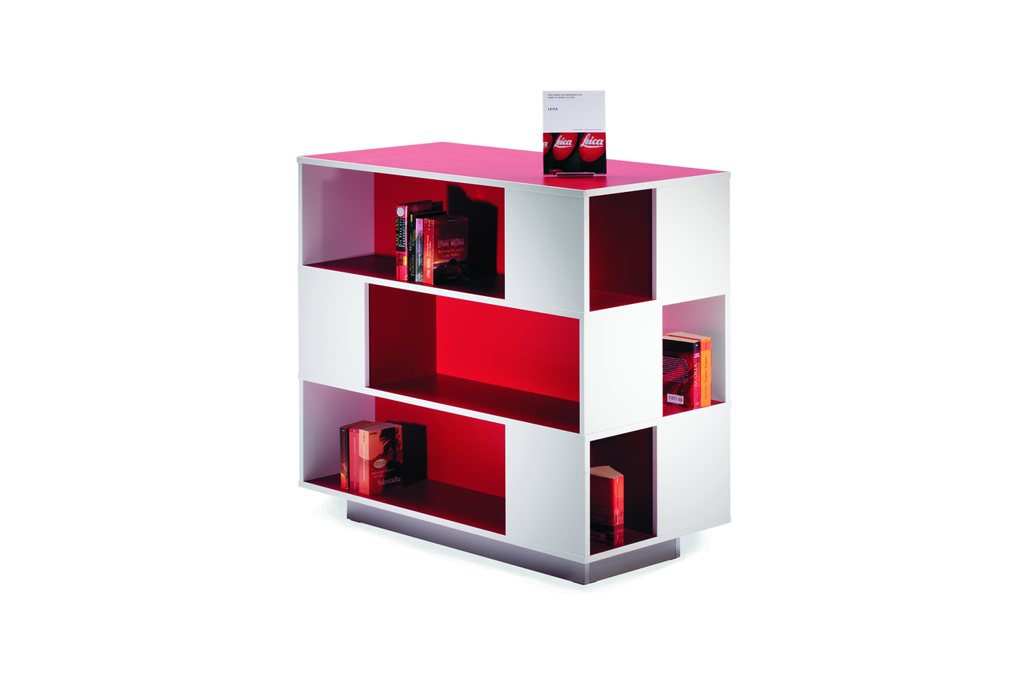 The Labyrinth Book Shelving has three levels and can store approximately 450 paperbacks. It is available with either plinth or four castors, two of which are lockable.