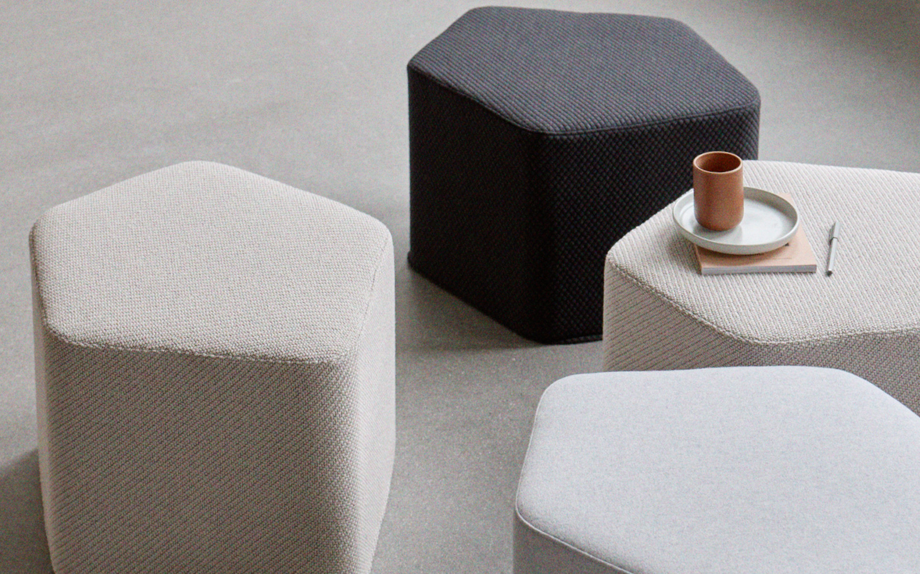 Lake creates immediate attention when you walk into the room. With its asymmetrical and characteristic design, the poufs are a great accessory to the library and work well together in groups - and with other library furniture.