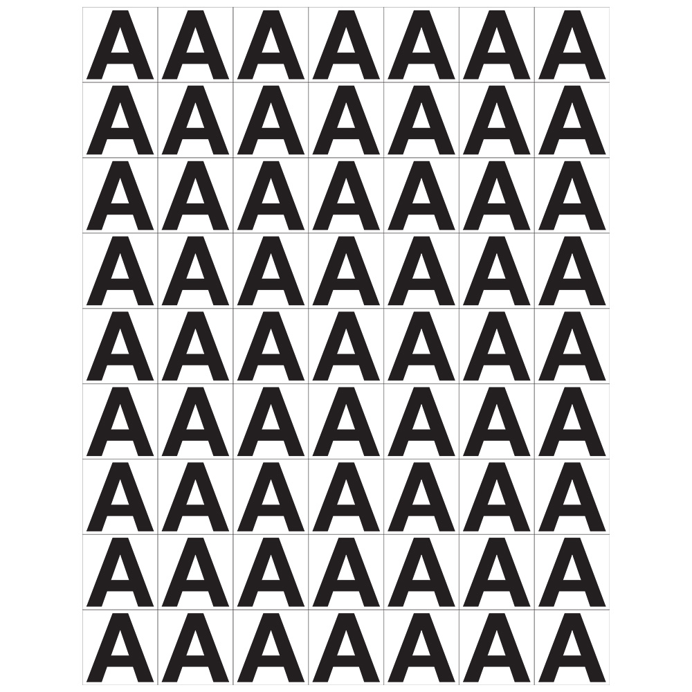 Easy to read letter stickers on sheets suitable for signage, marking on shelves, browsers or directly on books.
