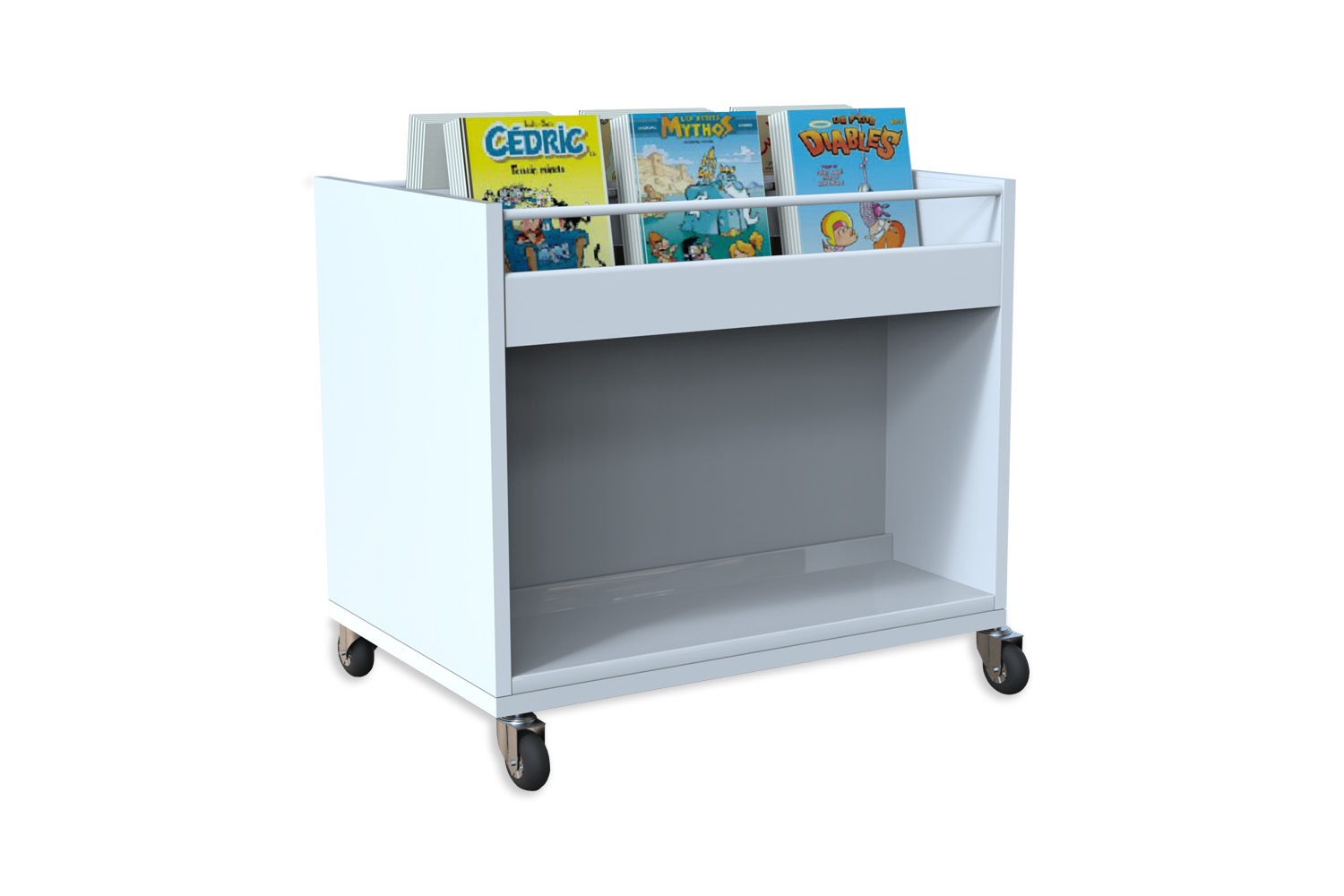 The wooden panels of the Lingo shelving system create a framed look for your browser, that can match the rest of the furniture in your library. The browser version is ideal for presentation and storage of comic and picture books or for CD’s/DVD’s. The modules exist as individual browsers or as starter and add-ons.