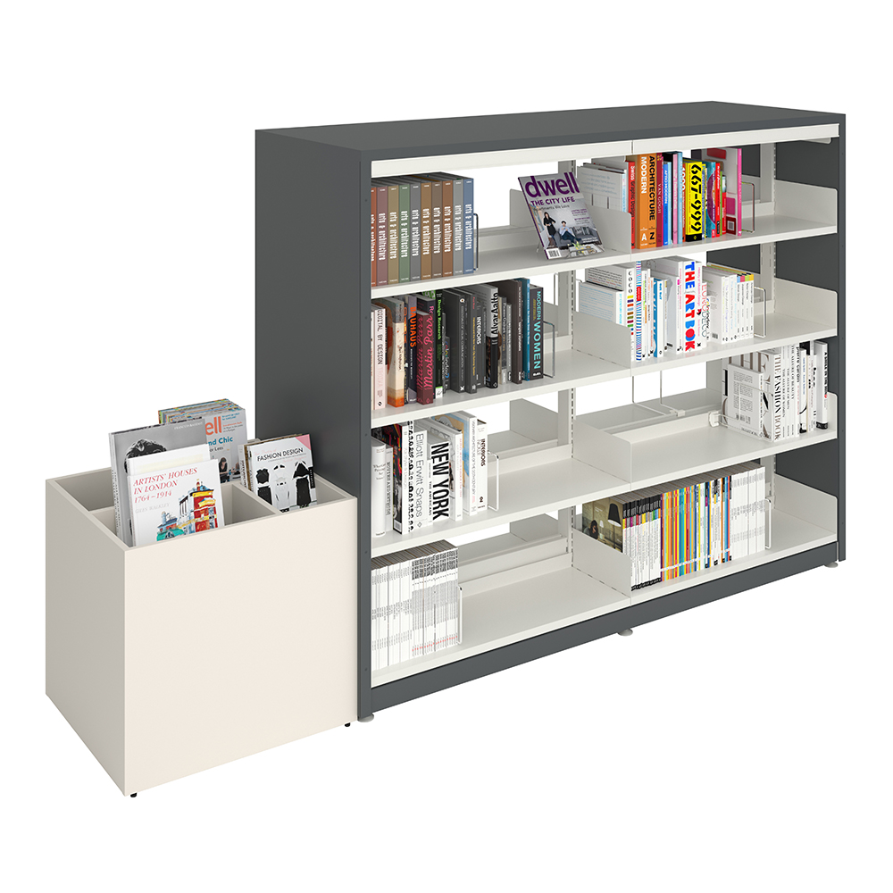 Perfect for creating small and large islands in the library. The simplistic shape fits well in most places and makes the books stand out.