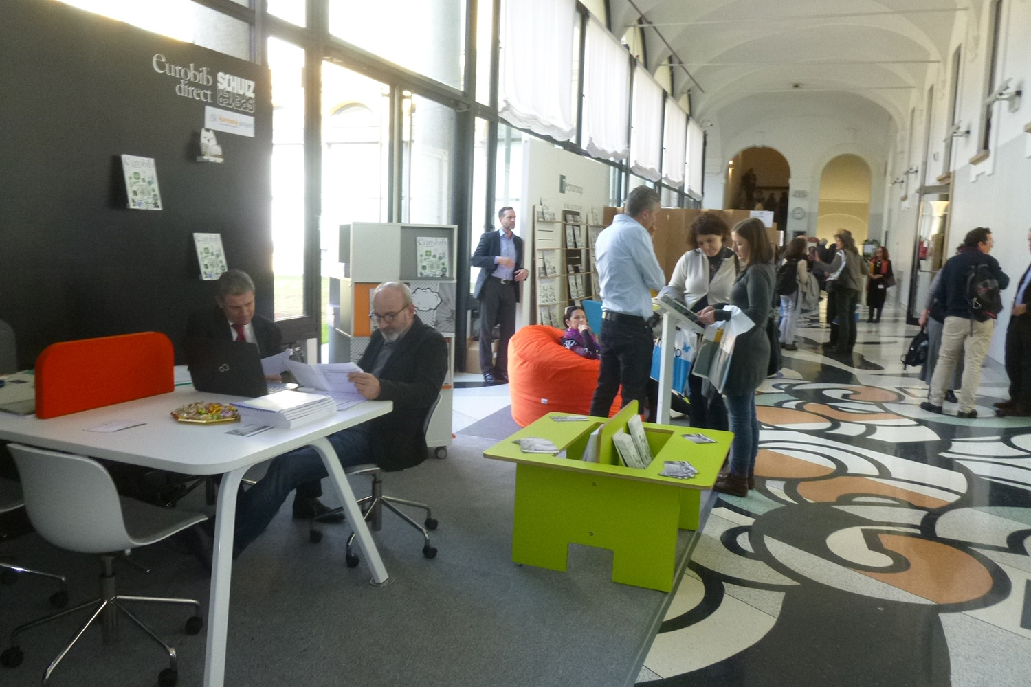 Our sister company Schulz Speyer Bibliothekstechnik AG and our Italian dealer Harmonie Project presented a selection of our products and our core competencies within library design.