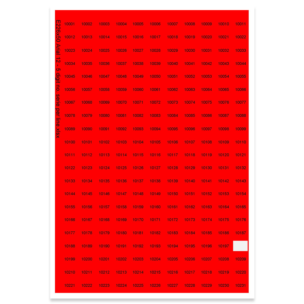 Add start number when ordering. Max 5 characters. Number is centered and the font is Arial size 12.