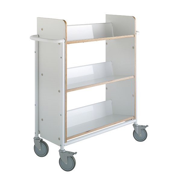 The trolley is spaceous and has a generous shelf clearance for all sizes of books and binders.