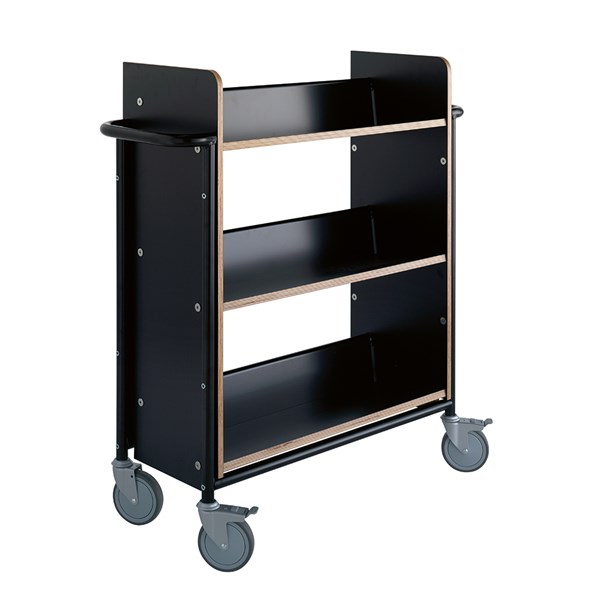 The trolley is spaceous and has a generous shelf clearance for all sizes of books and binders.
