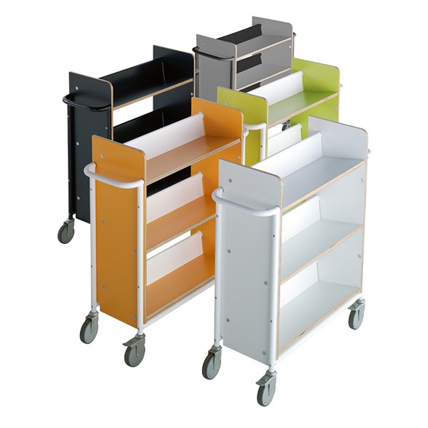 The trolley is spaceous and has a generous shelf clearance for all sizes of books and binders.