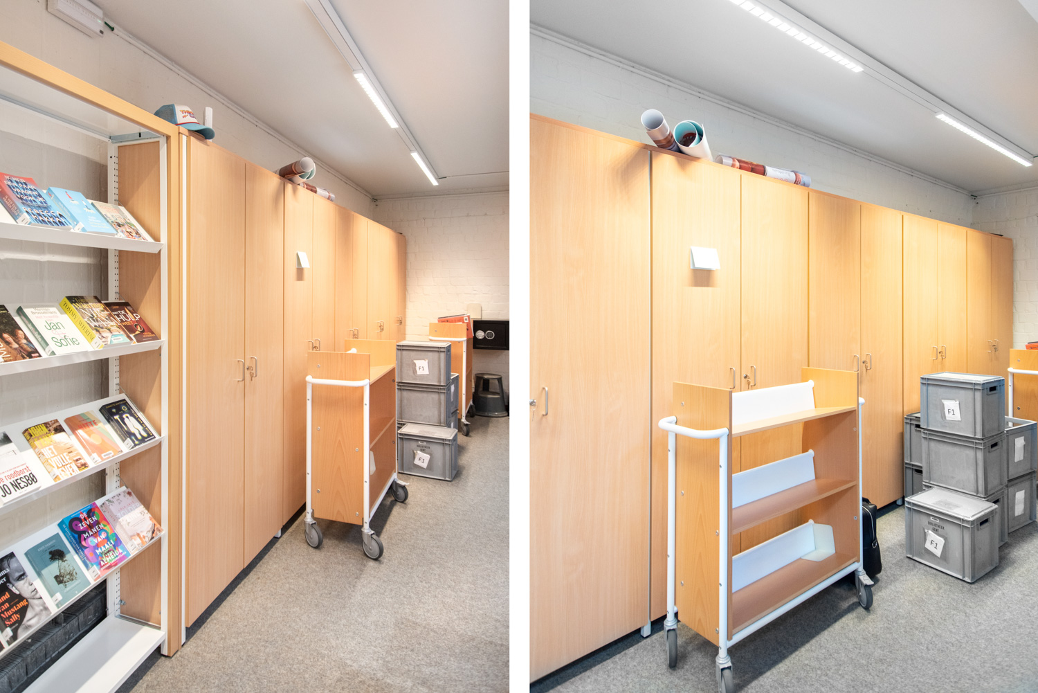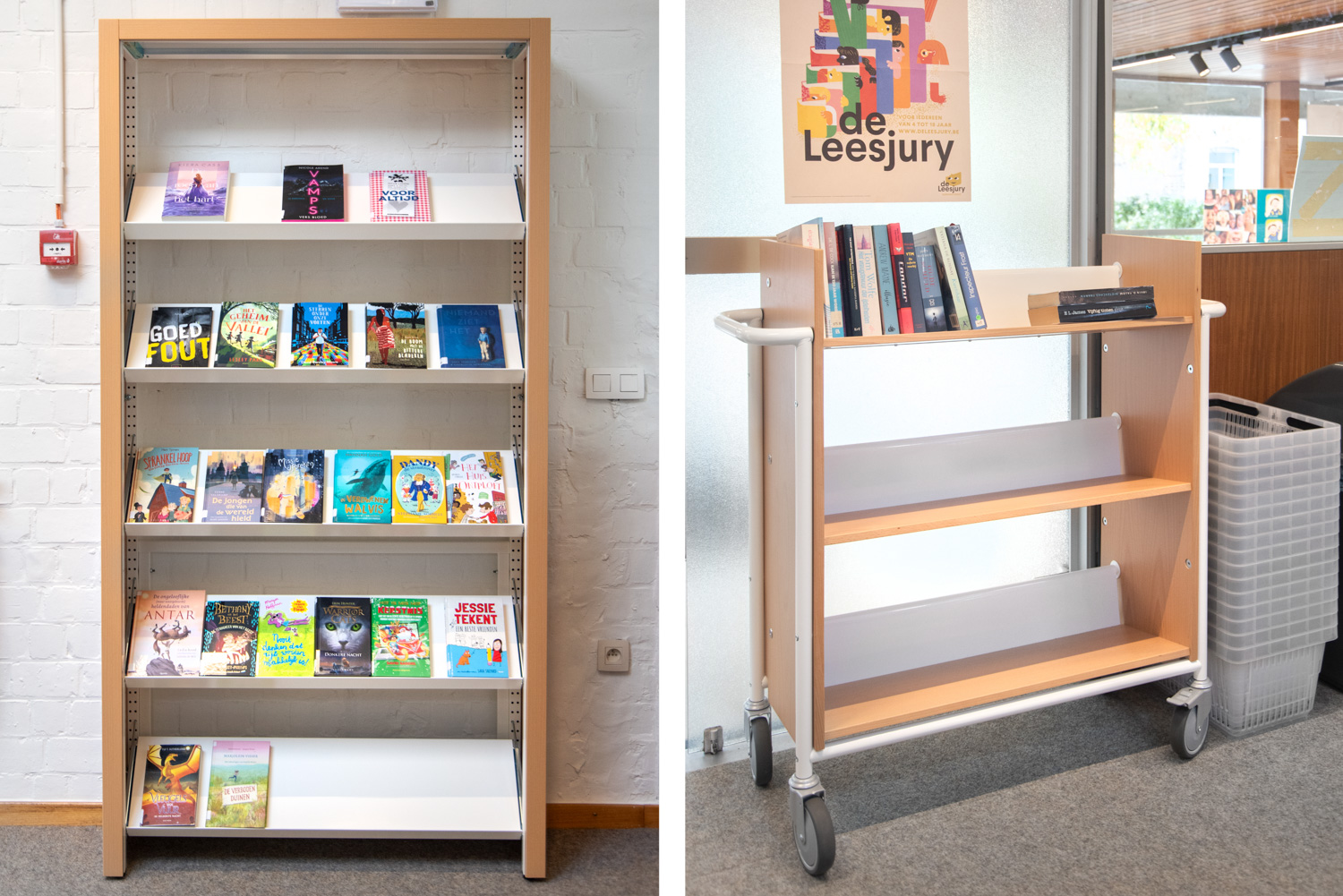 This book trolley can be used as a mini shelving system that can be moved around in the library where needed.