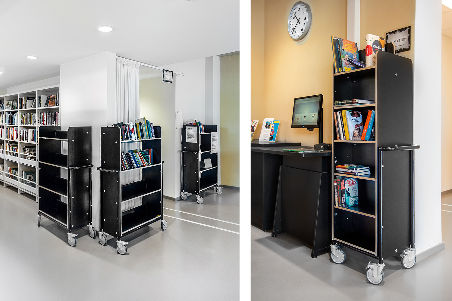 This book trolley can be used as a mini shelving system that can be moved around in the library where needed.
