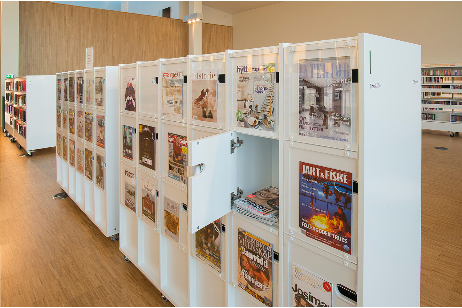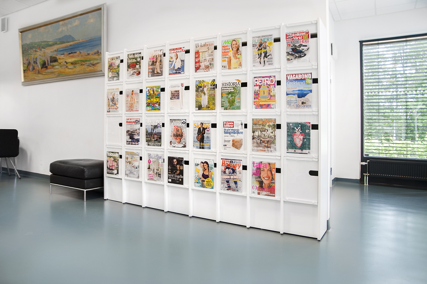 Discover new titles or find the magazine you are looking for right away. The transparent acrylic display on the cabinet doors provides both guidance and inspiration. Behind the doors you will find back issues which have been easily and logically stored. The cabinets also have room for A4 vertical storage boxes.