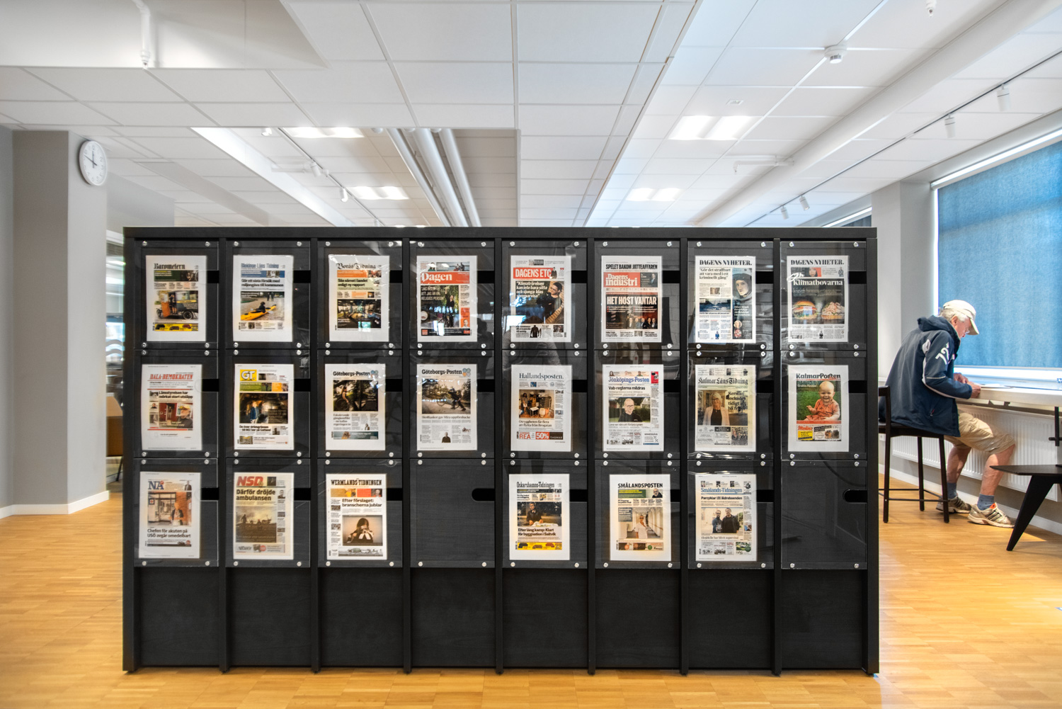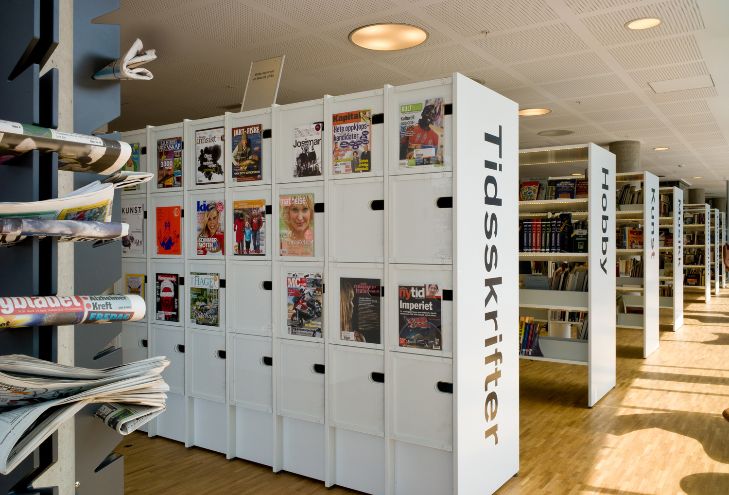 The Ordrup magazine display is available both single- and double-sided and is, as standard, delivered in painted MDF in any NCS or RAL colour. See technical specifications under Downloads for more details.